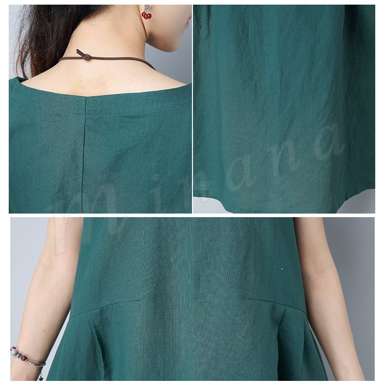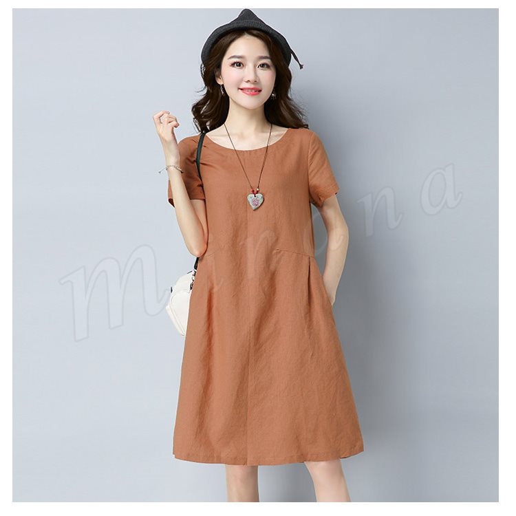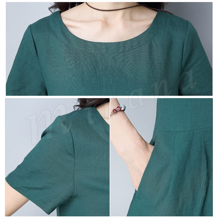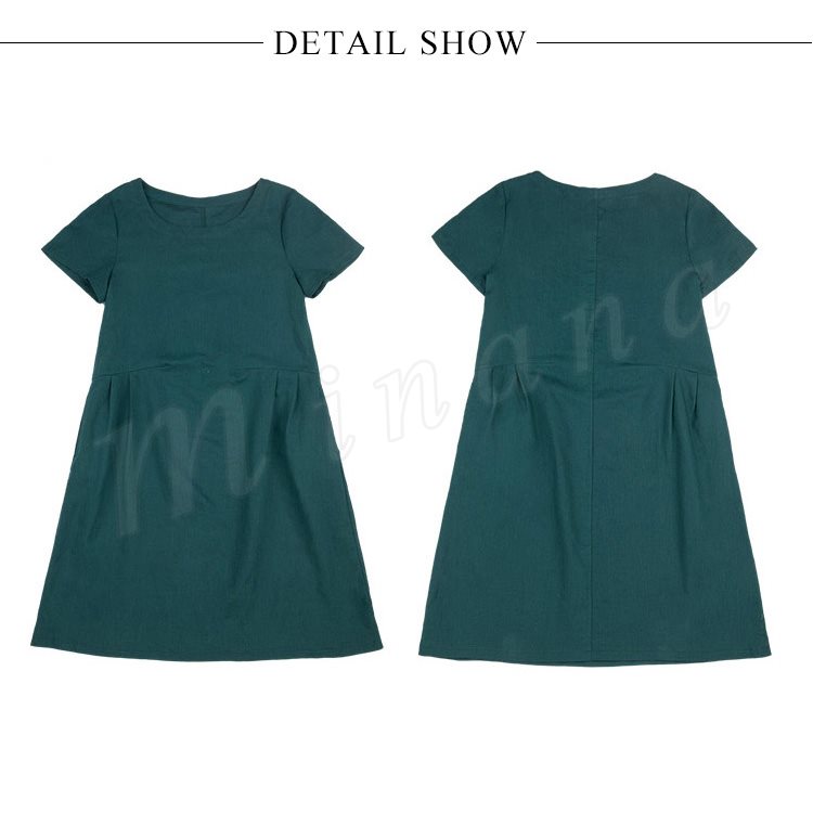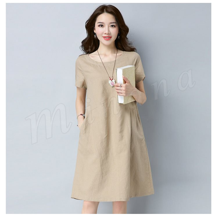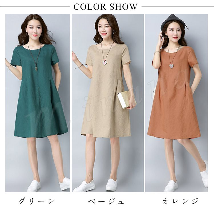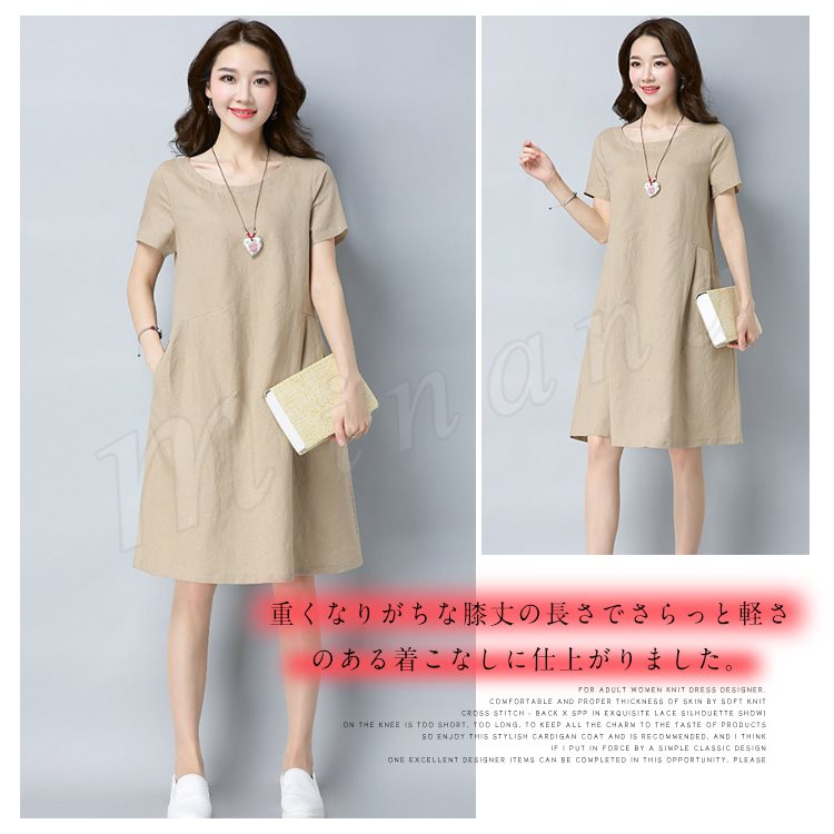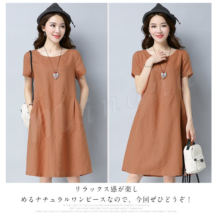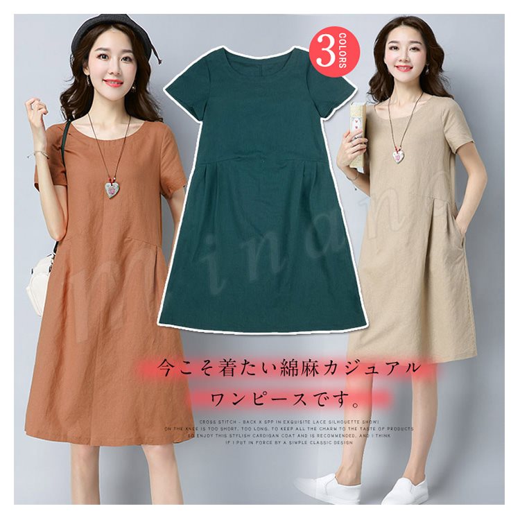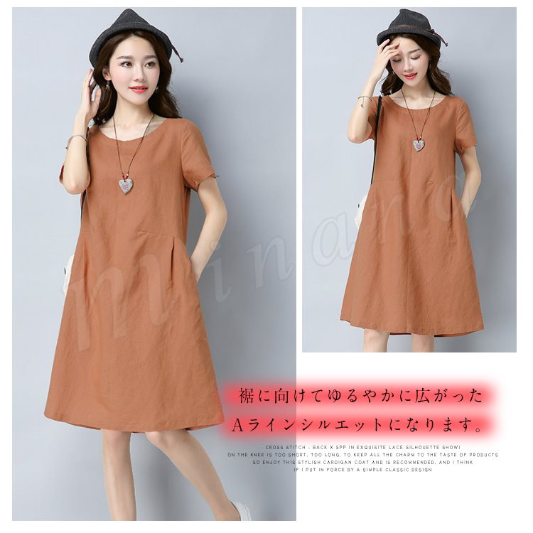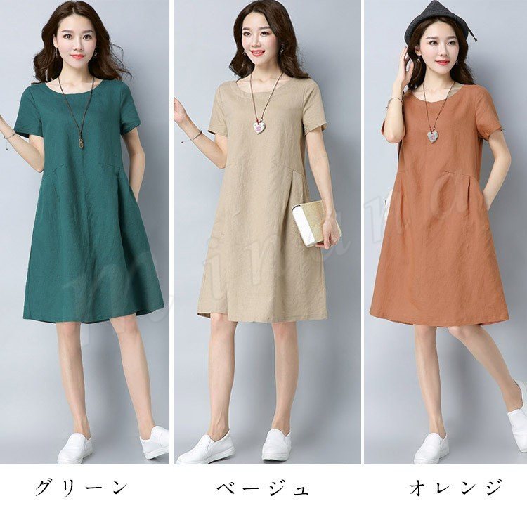 リネンワンピース レディース ワンピース 半袖 カジュアルワンピース リネン 綿麻 シンプル ゆったり ナチュラル コットンリネン