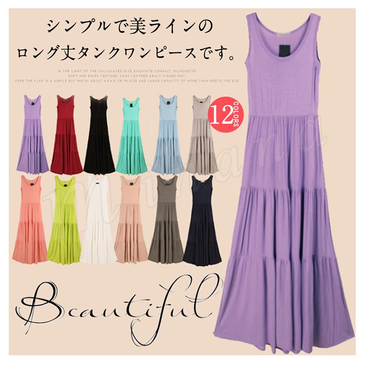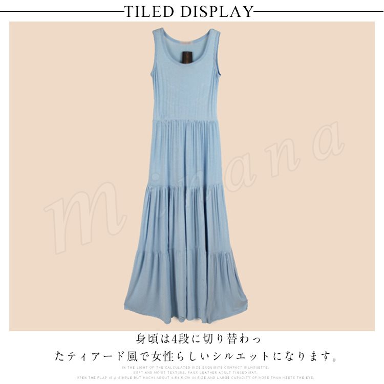 ティアード ワンピース レディース Aライン タンクワンピース ロング丈 マキシ丈 マキシワンピース 春 夏 大きいサイズ ゆったり 無地 シンプル