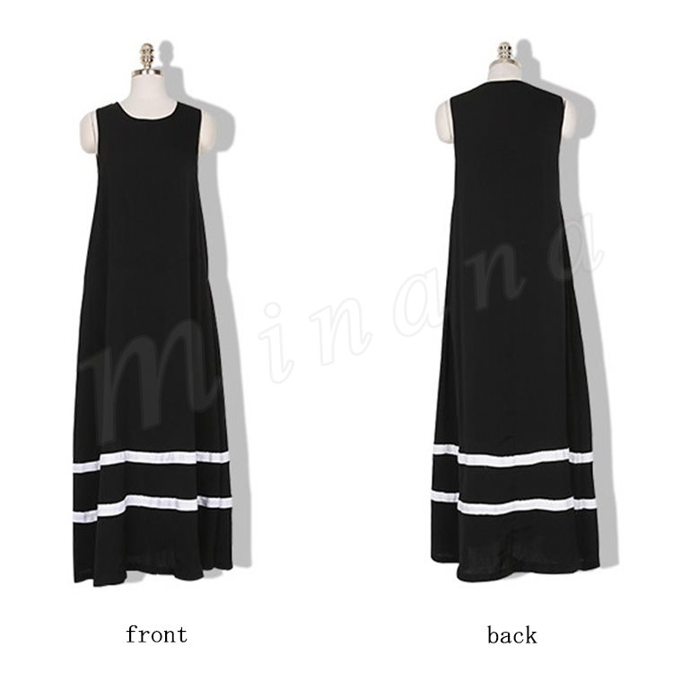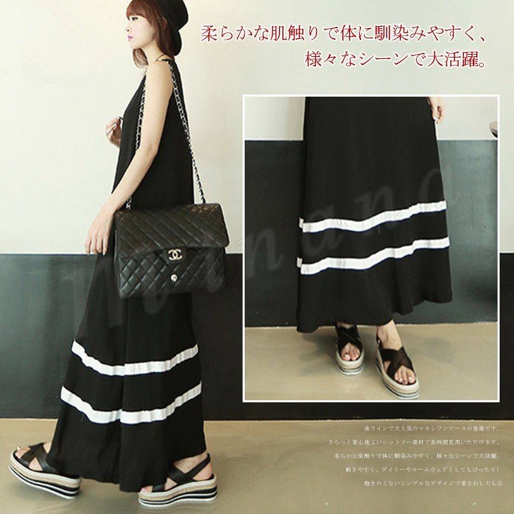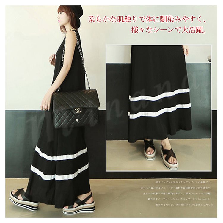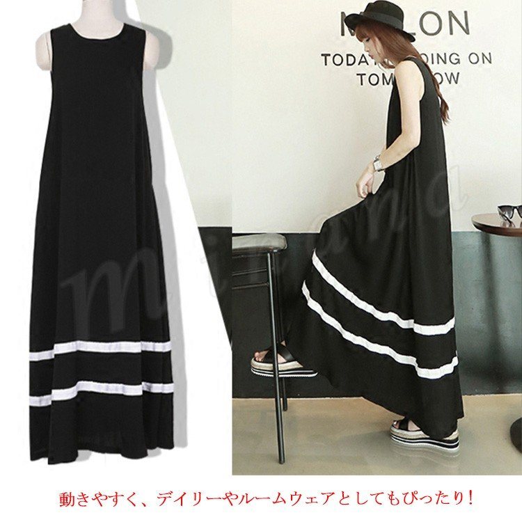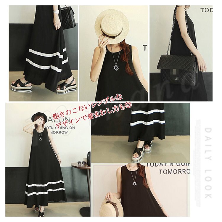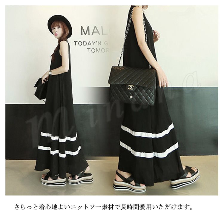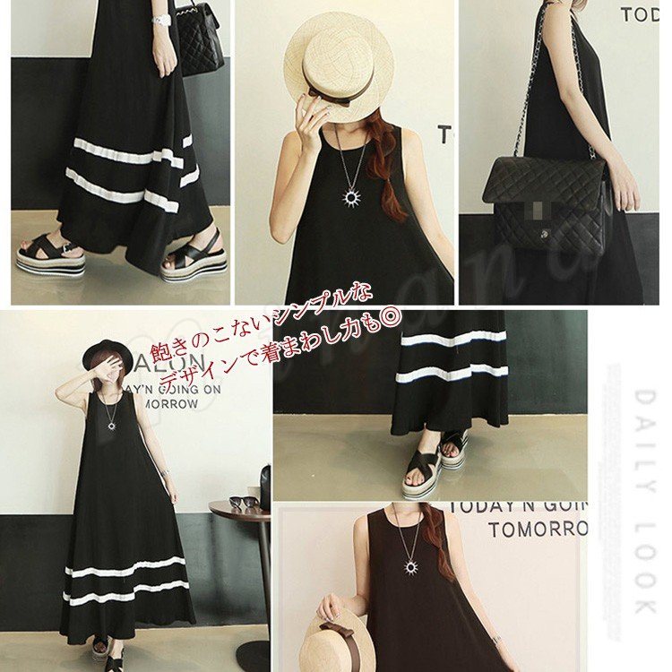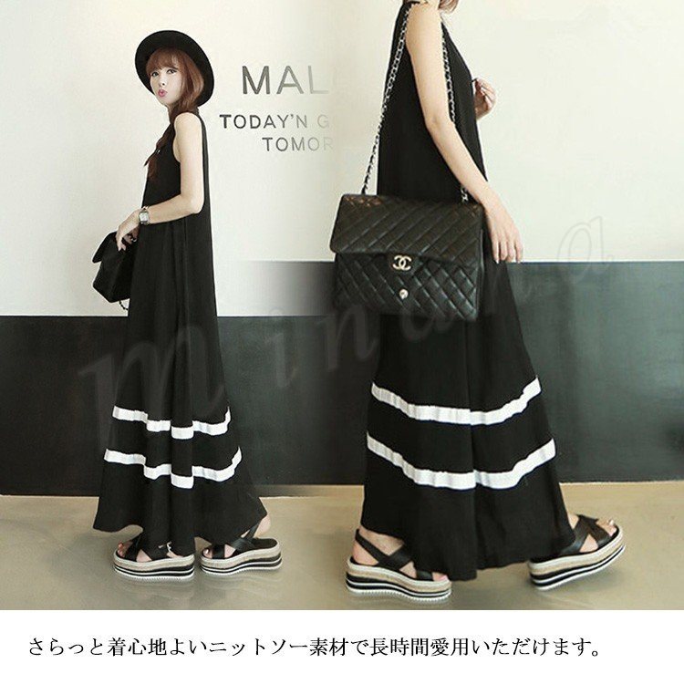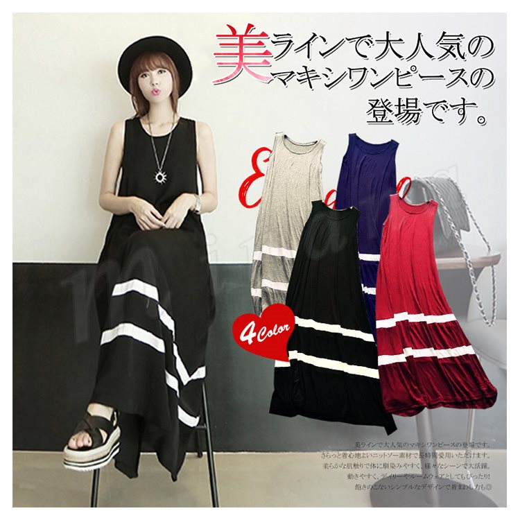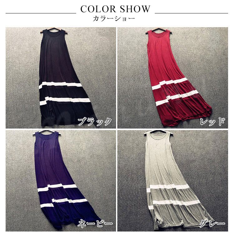 全4color タンクワンピース マキシ丈 ロングワンピース マキシワンピース 夏ワンピース ノースリーブ ワンピース 配色 ゆったり aライン 楽チ