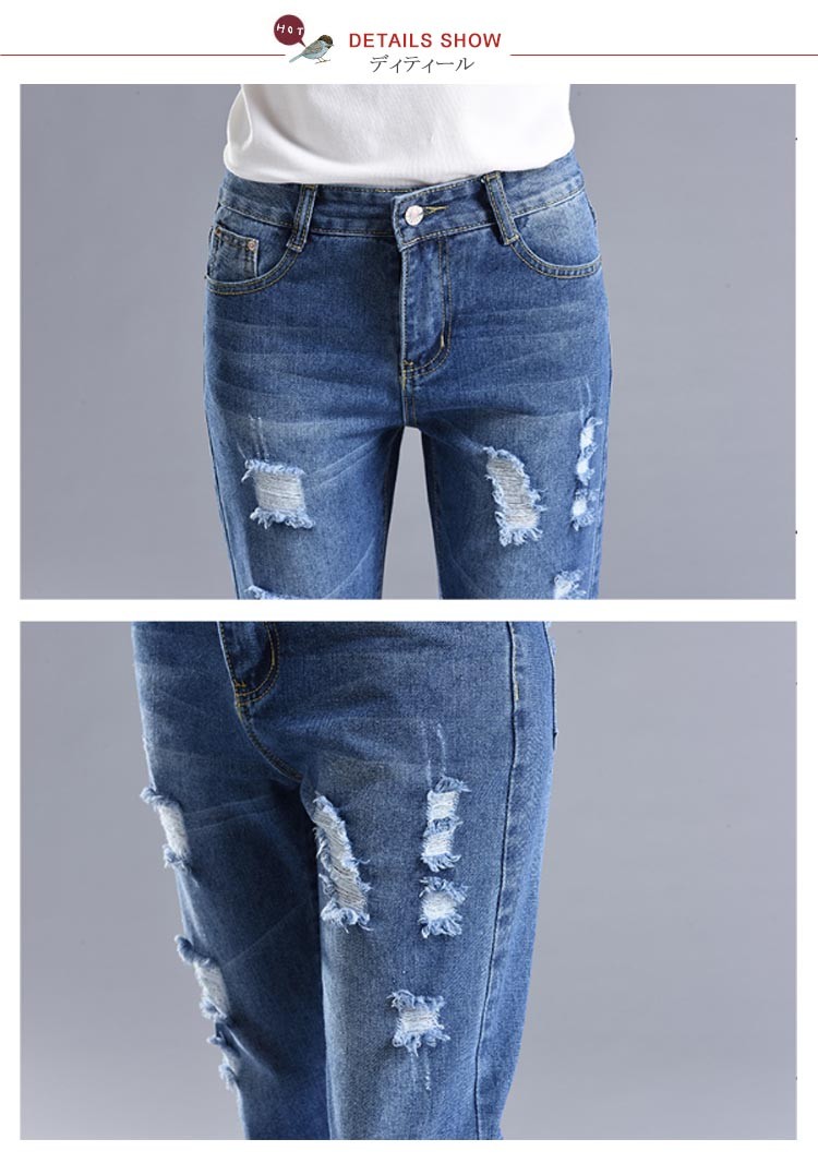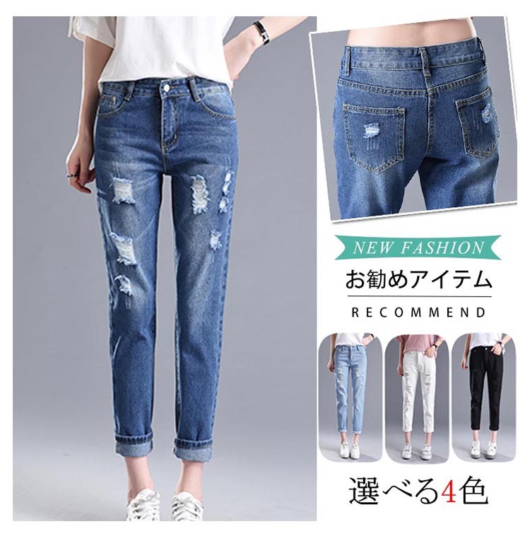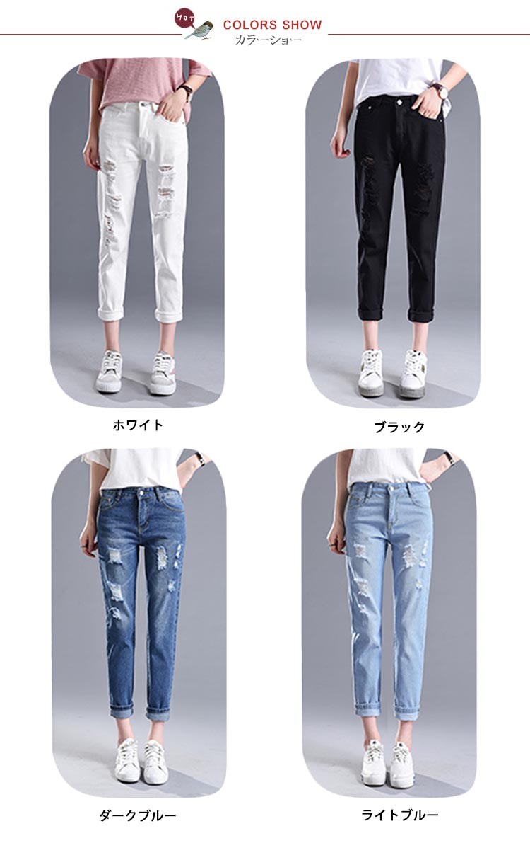 レディース ボトムス パンツ スキニー レギンス デニム ストレッチ スリム 9分丈 ダメージ ジーンズ