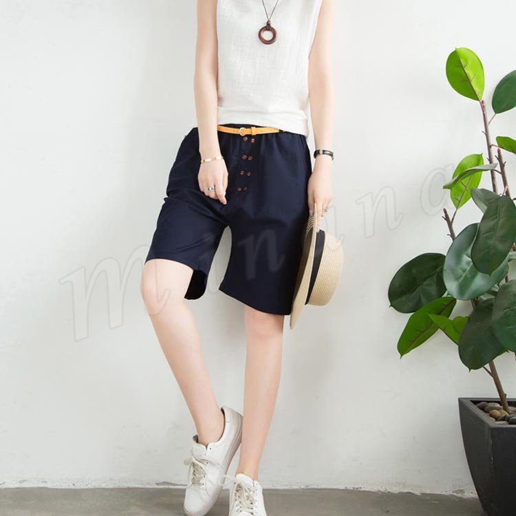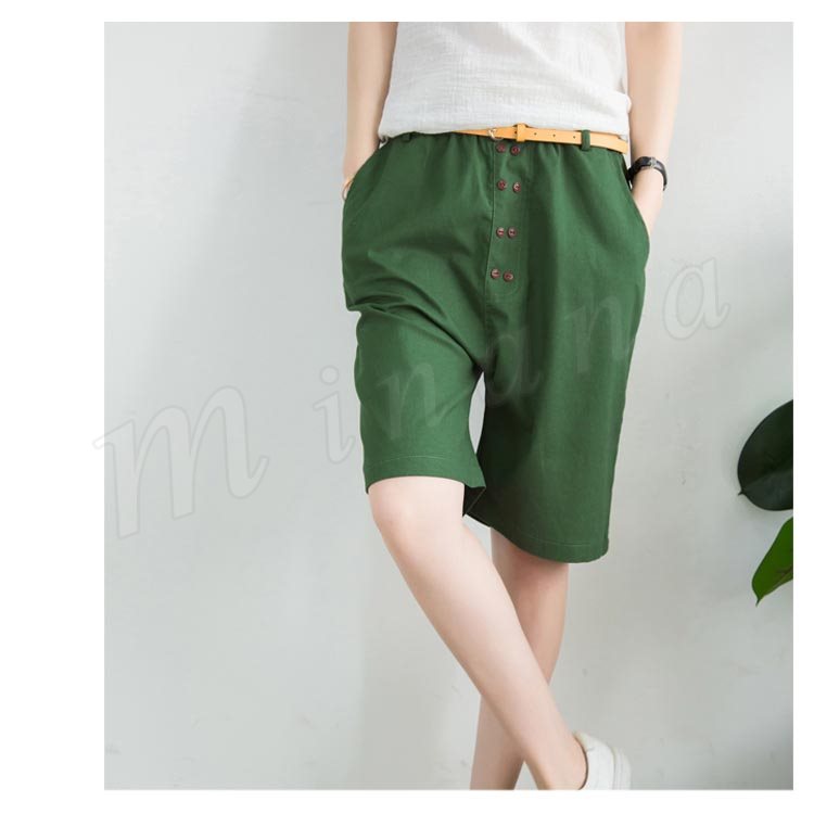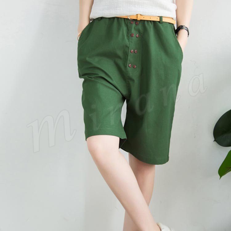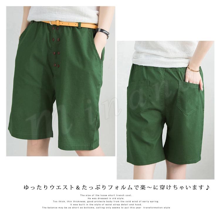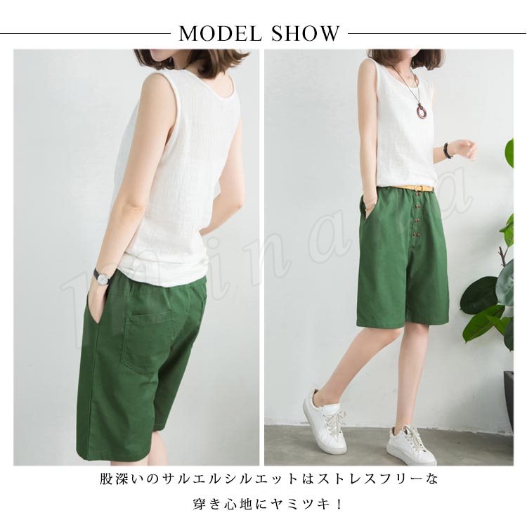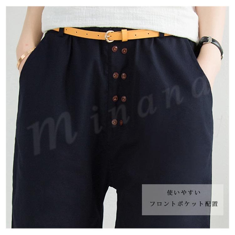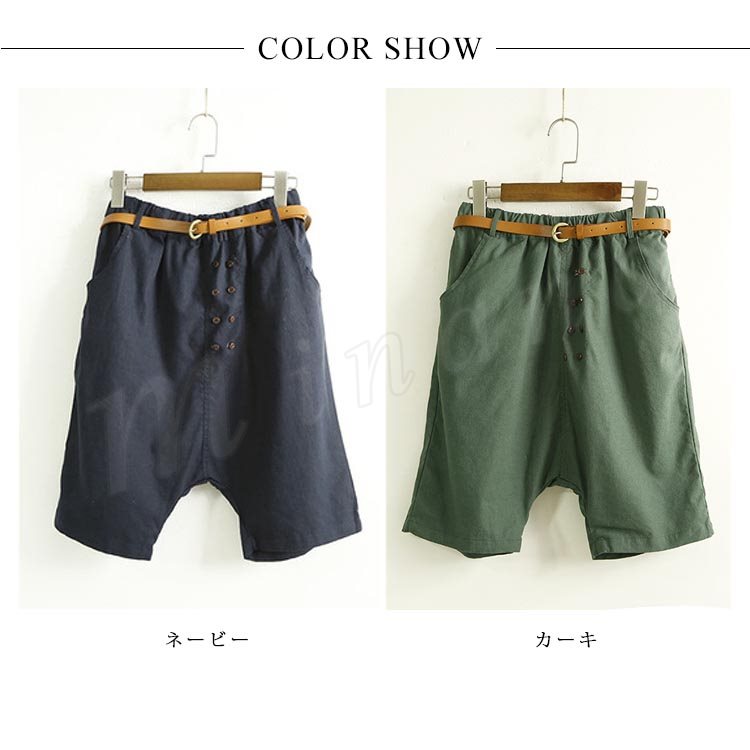 綿麻素材で穿きやすい!リネンパンツ 五分丈 サルエルハーフパンツ サルエルパンツ ハーフパンツ 綿麻 夏 ショートパンツ 5分丈 膝丈 ゆったり 無地