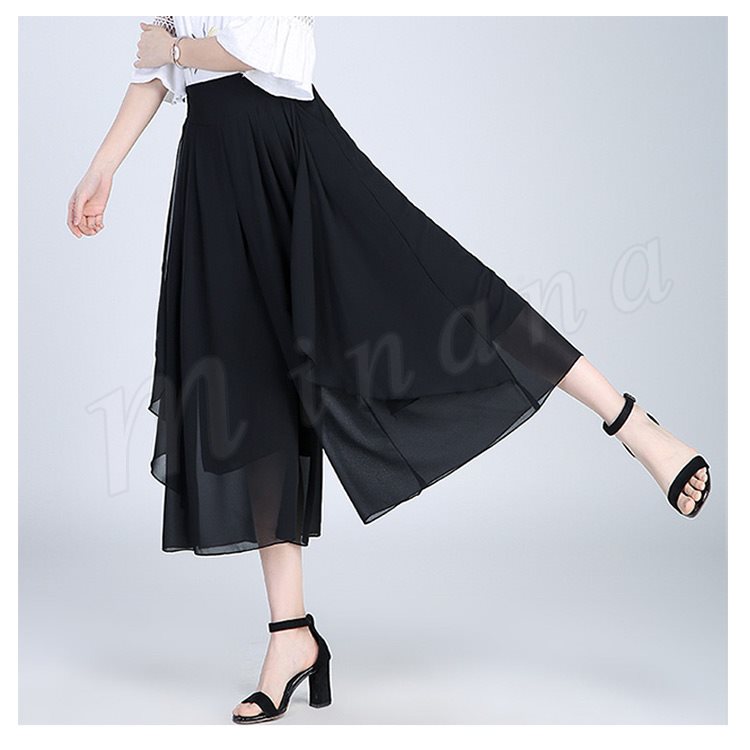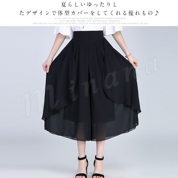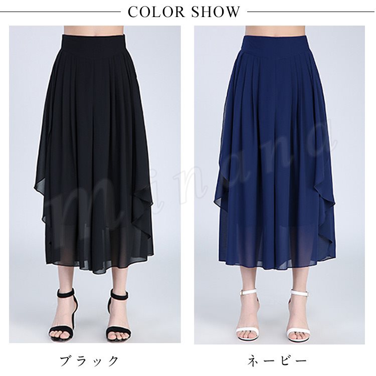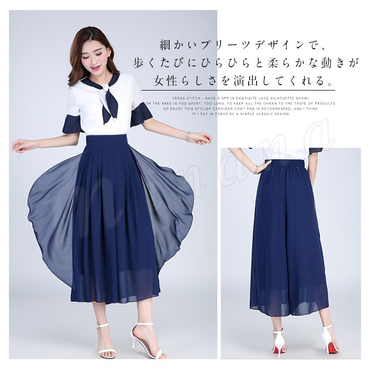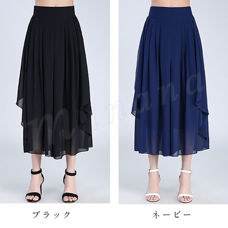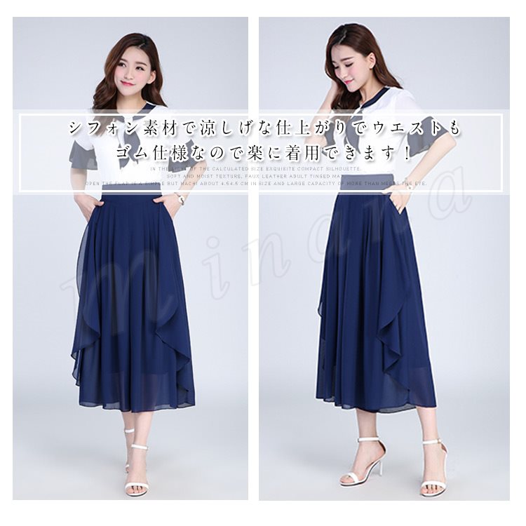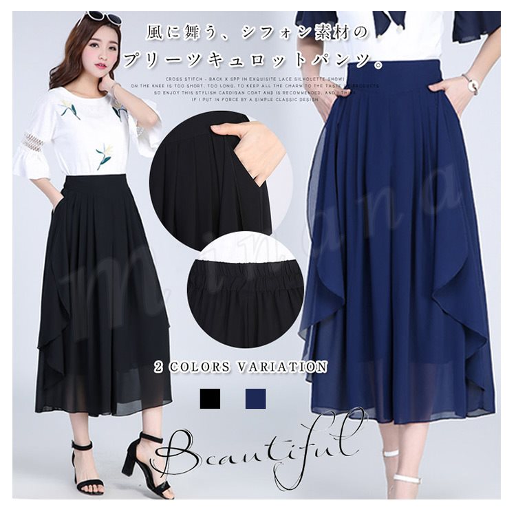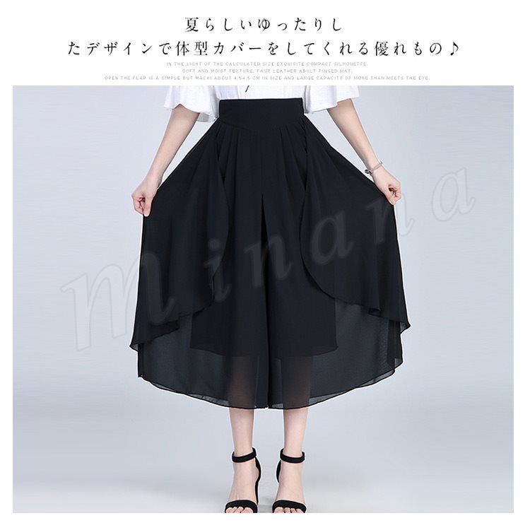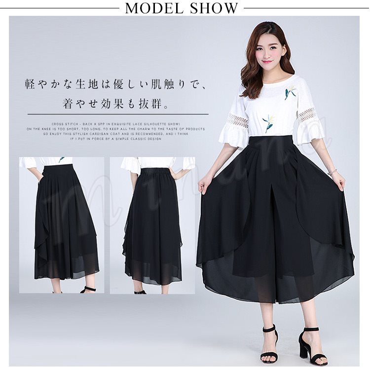 シフォン素材で涼しげな仕上がりでウエストもゴム仕様なので楽に着用できます!