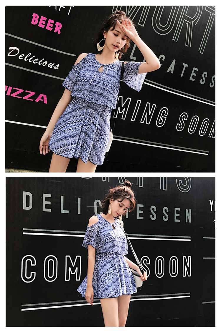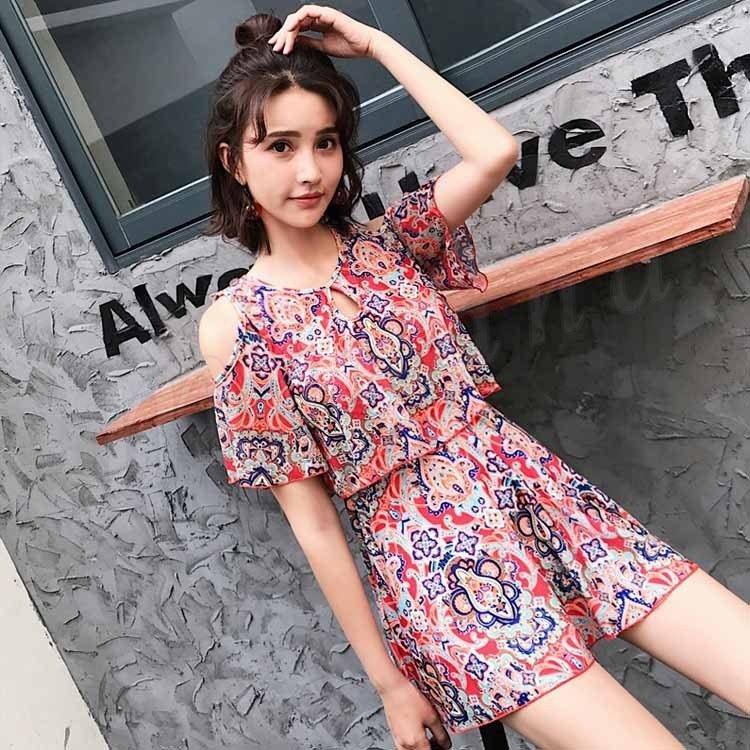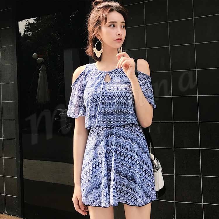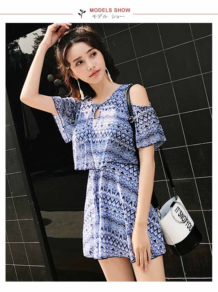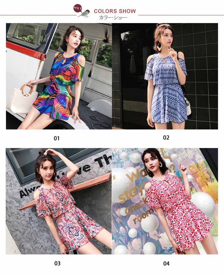 水着 レディース 体型カバー 水着 ワンピース セパレート水着 肩出し ショートパンツ 2点セット 水着 大きいサイズ スイムウェア 女性用 ママ