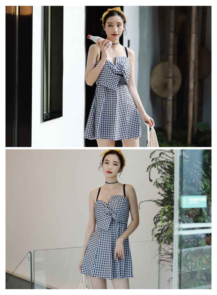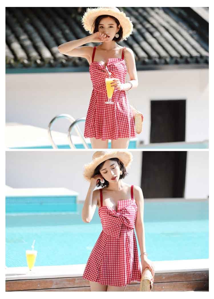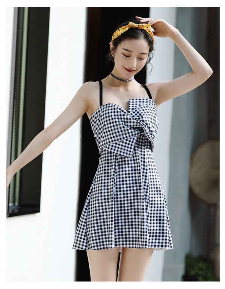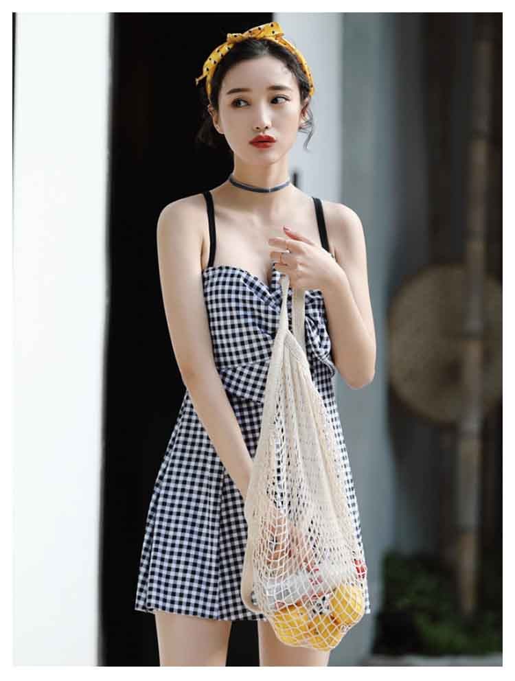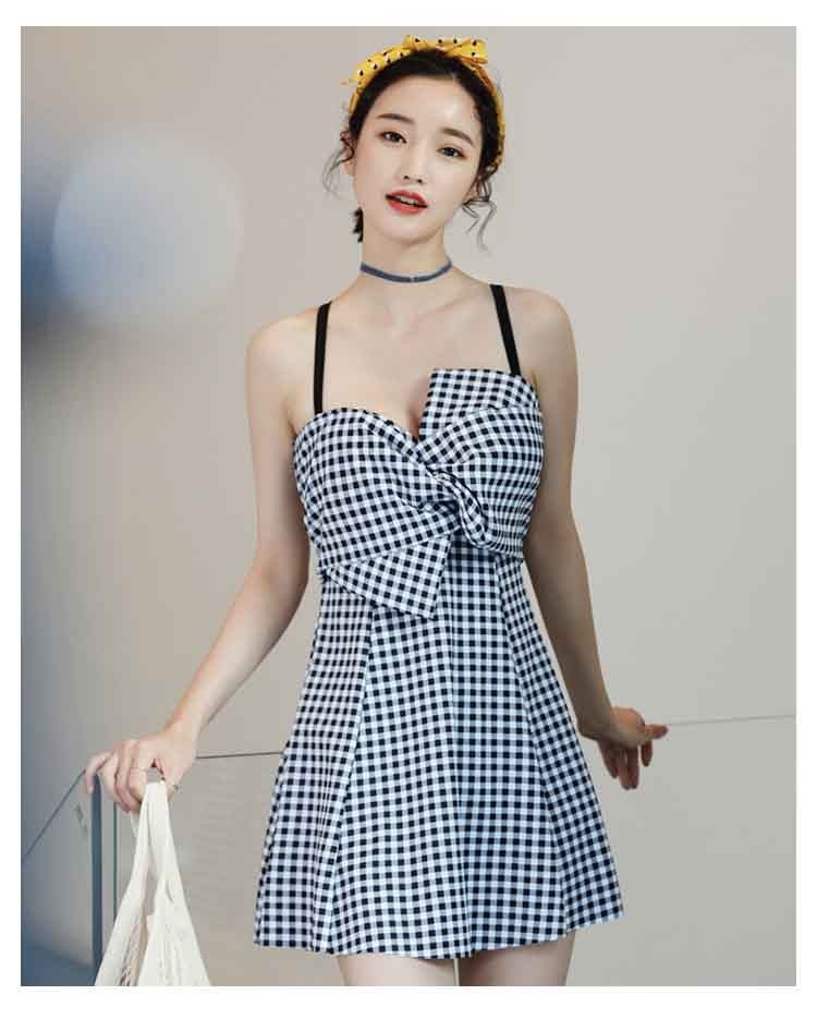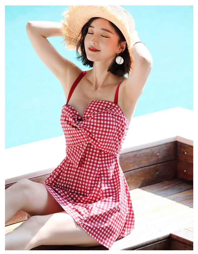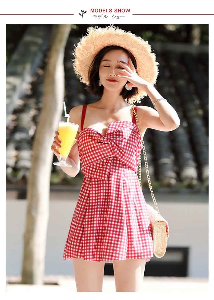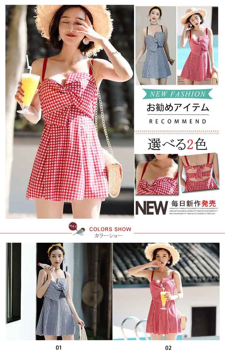 水着 レディース 体型カバー 水着 セパレートワンピース チェック 肩出しカバーアップ 水着 スイムウェア 女性用 ママ可愛い 海水浴 温泉 ビーチ