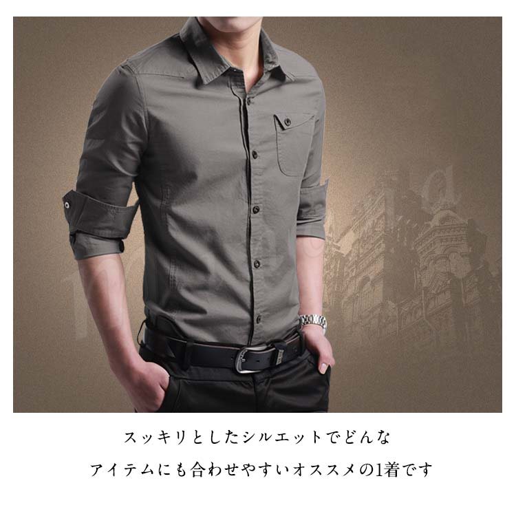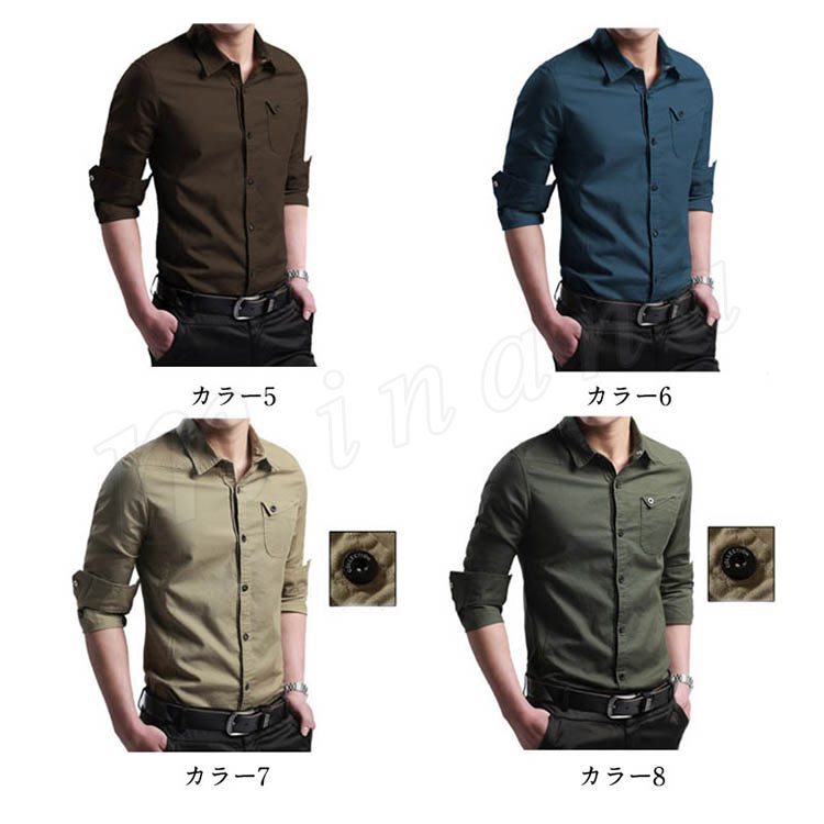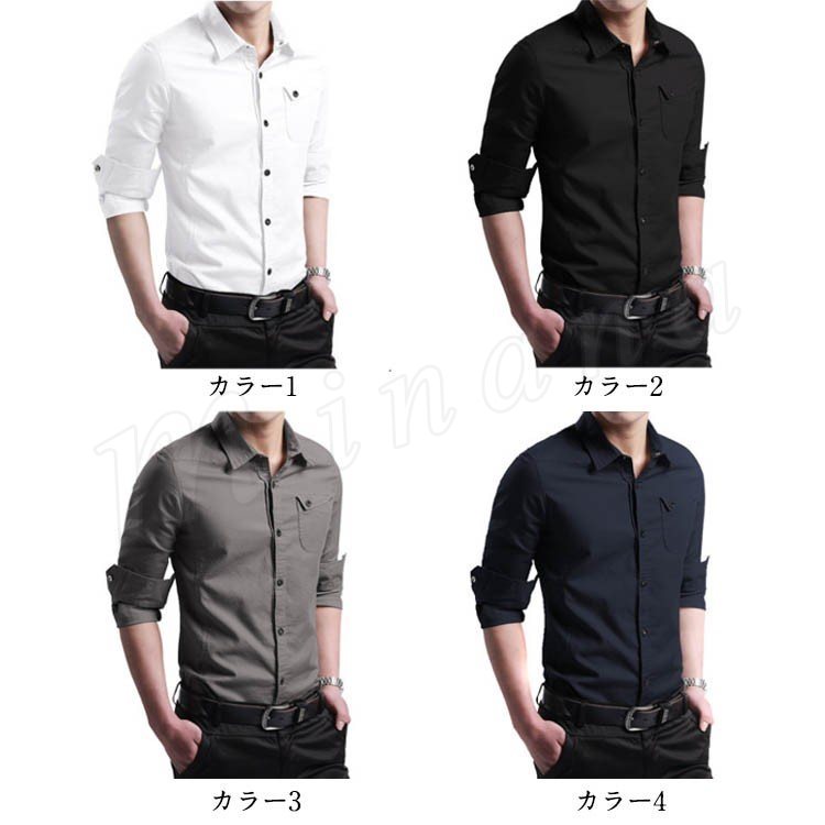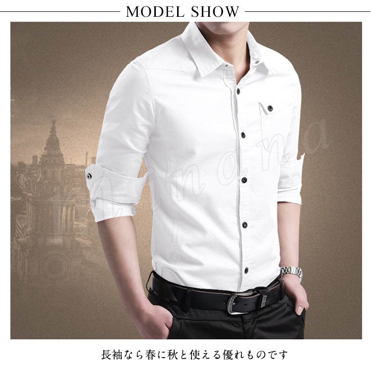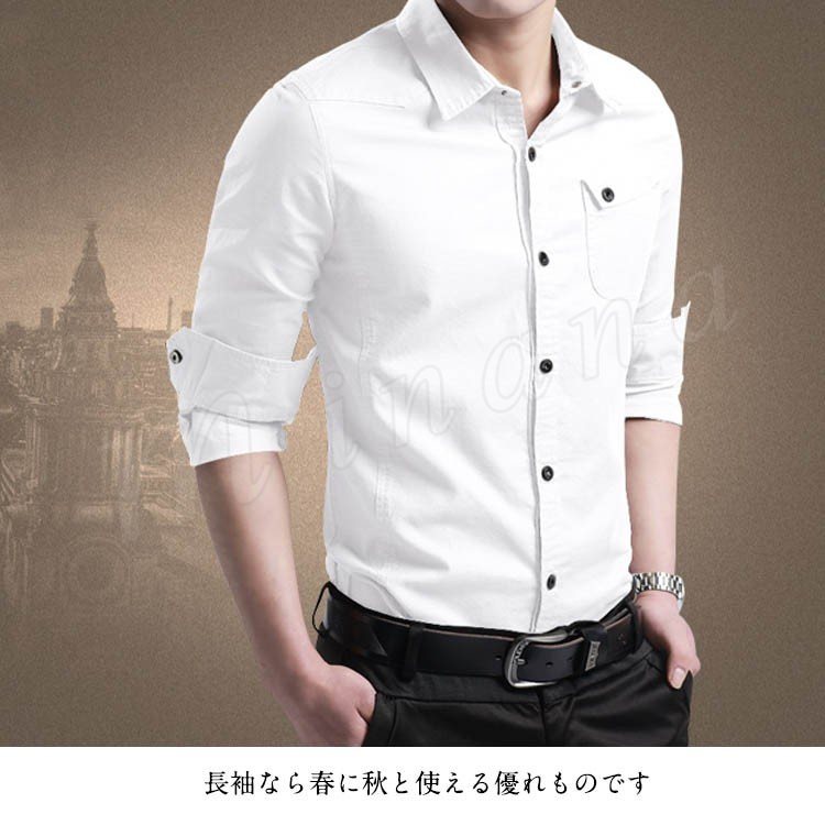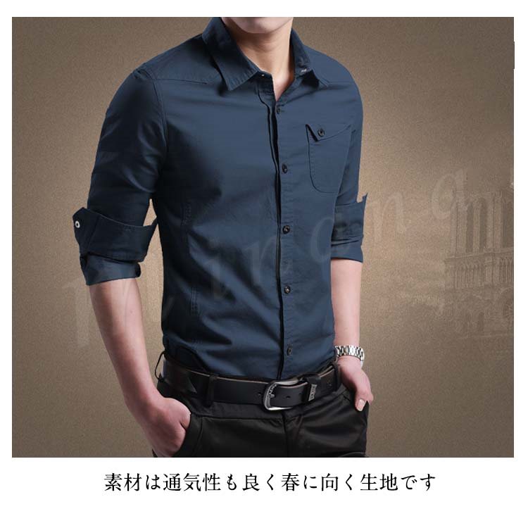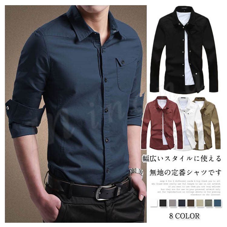 シャツ メンズ 長袖シャツ カジュアルシャツ スリムシャツ ビジネスシャツ ボタンシャツ 無地シャツ メンズファッショントップス シンプル 春物 春服