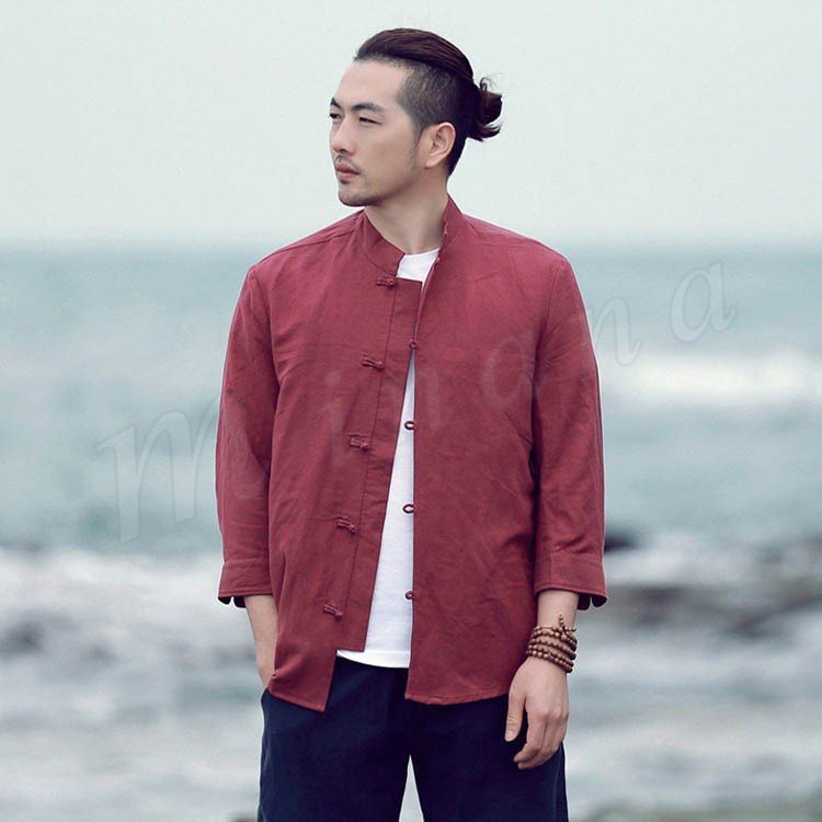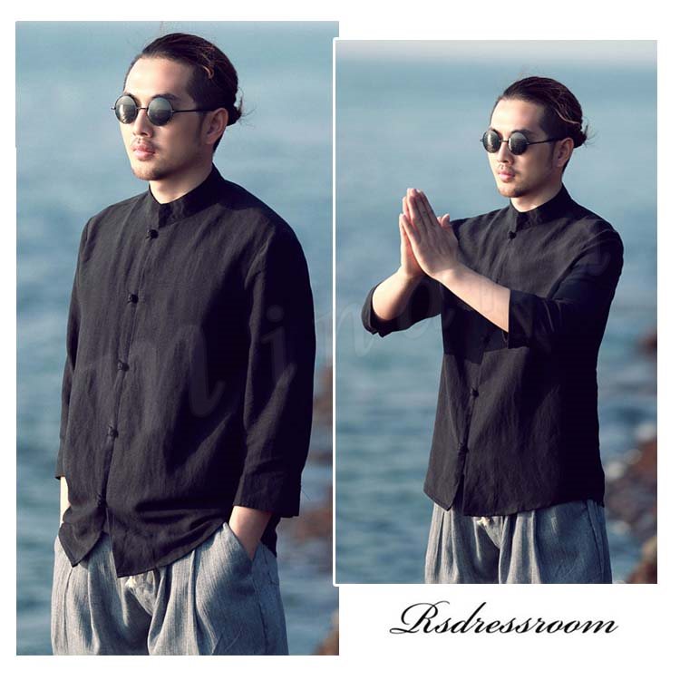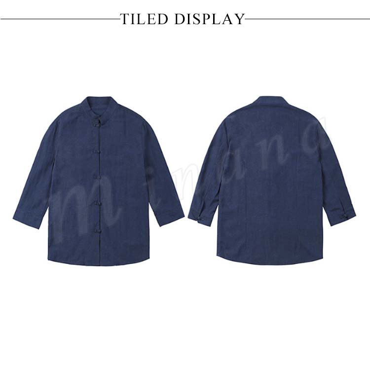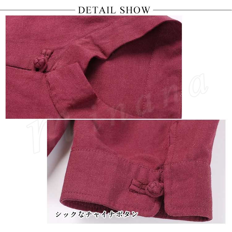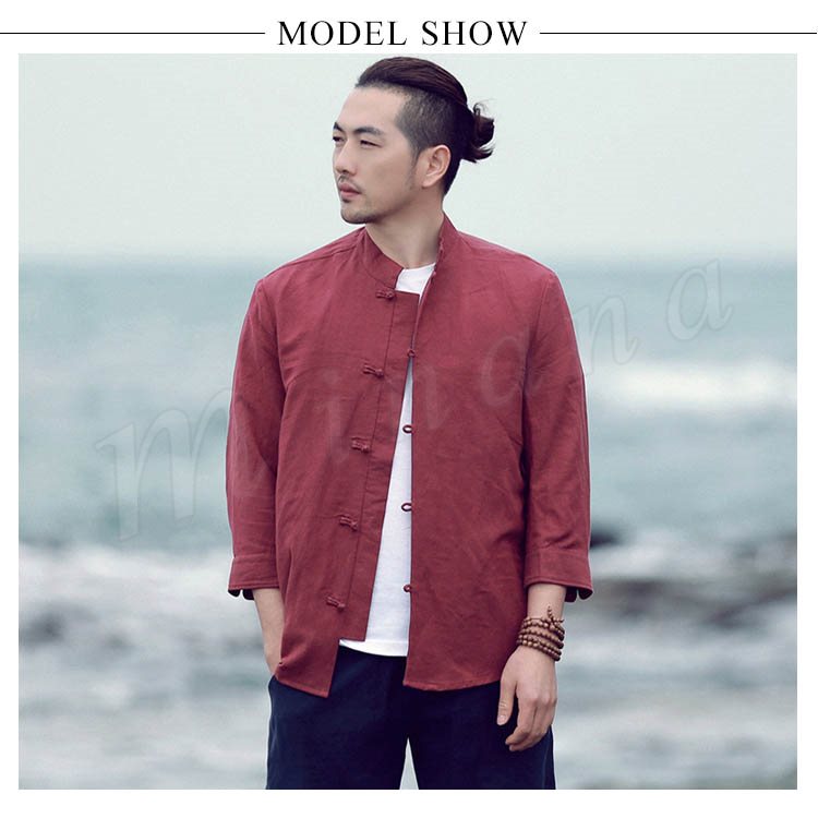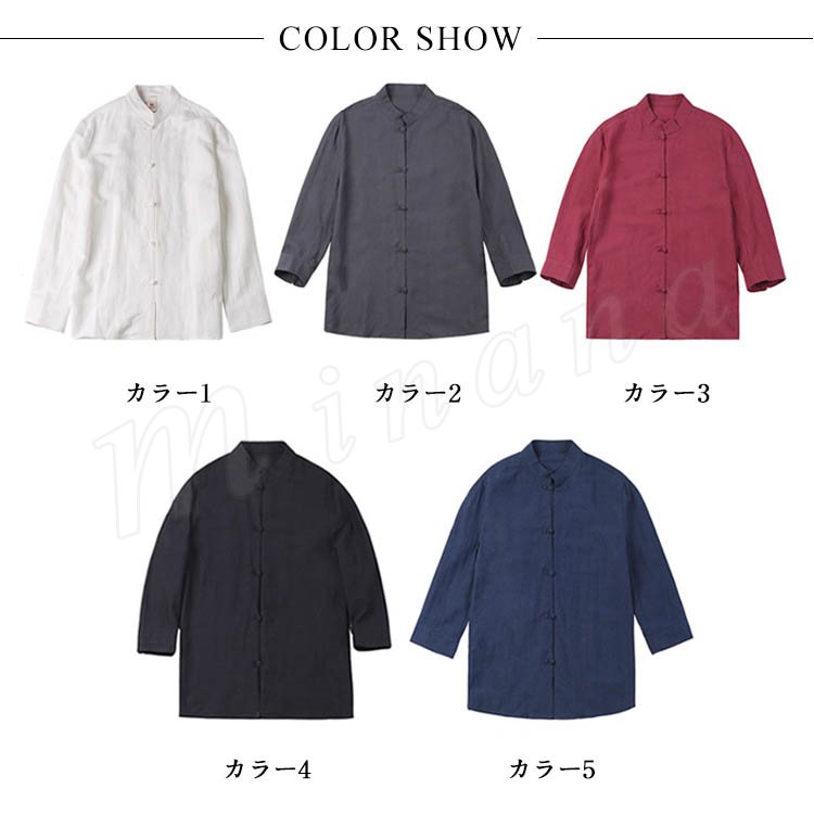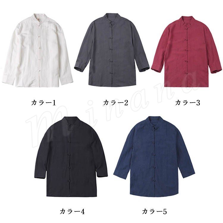 リネンシャツ メンズ 麻生地 7分袖 無地 カジュアルシャツ リラックス チャイナボタン チャイナ風 シンプル ファッション エスニック クラシック