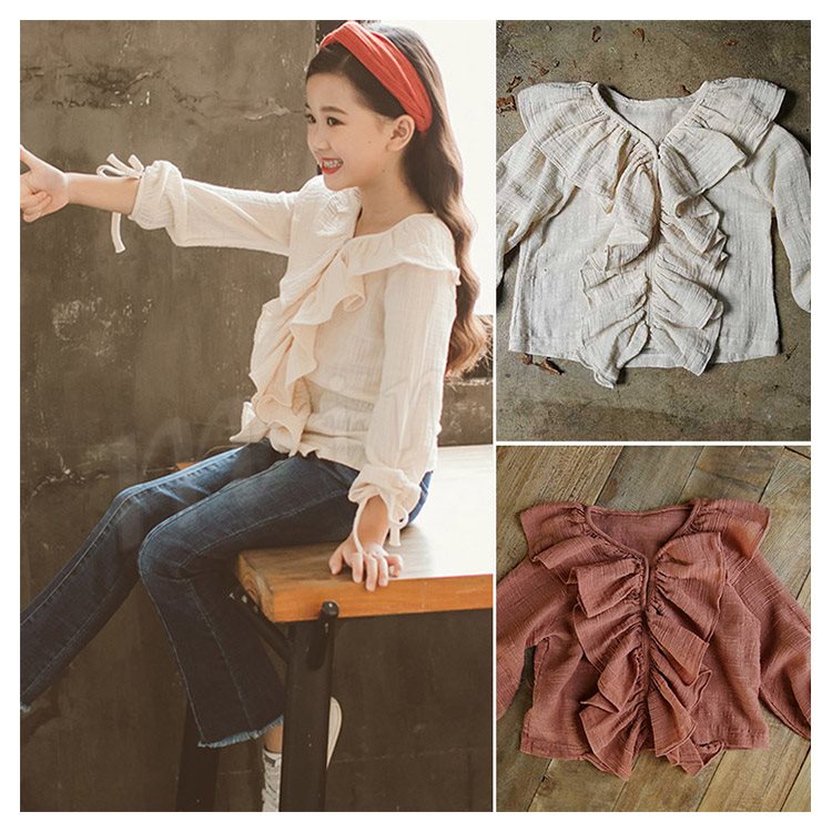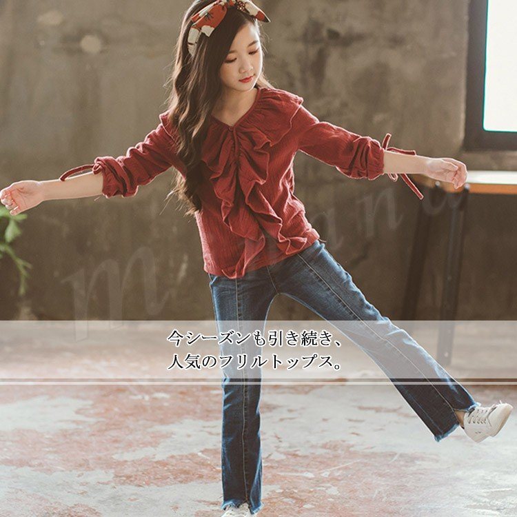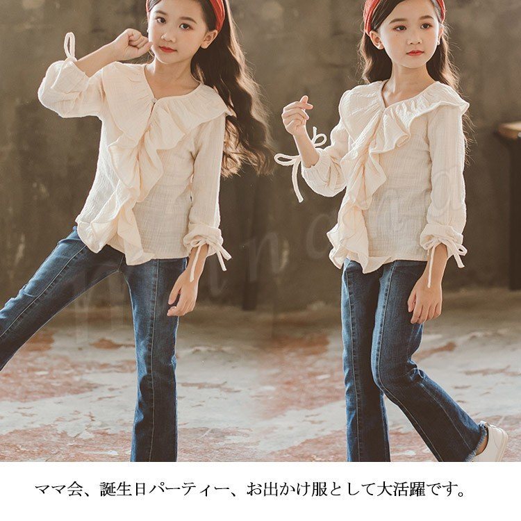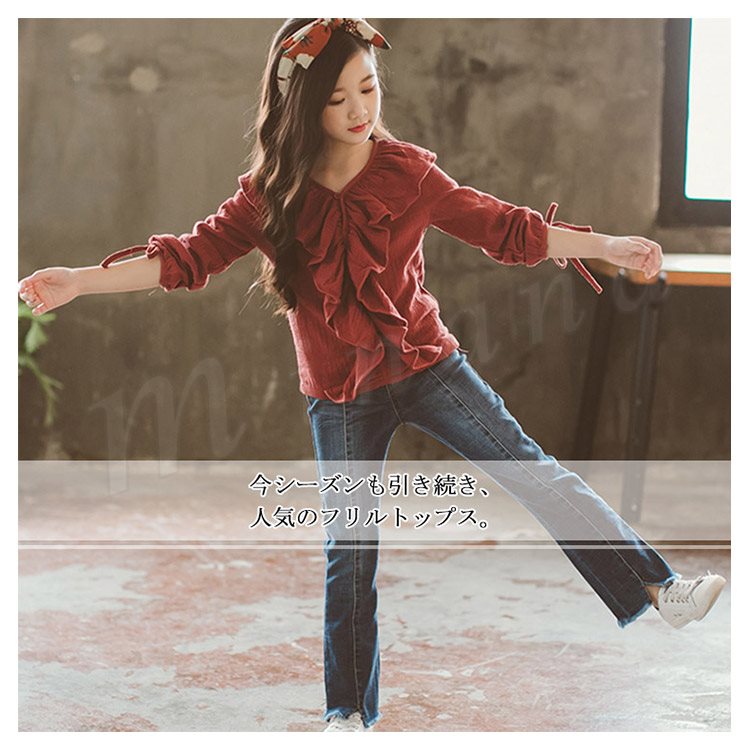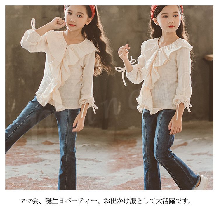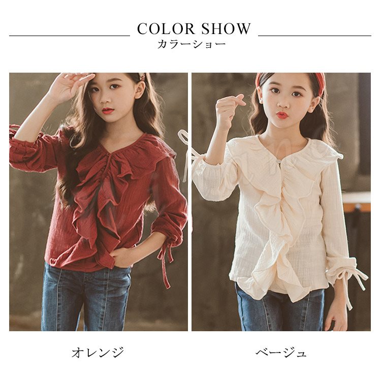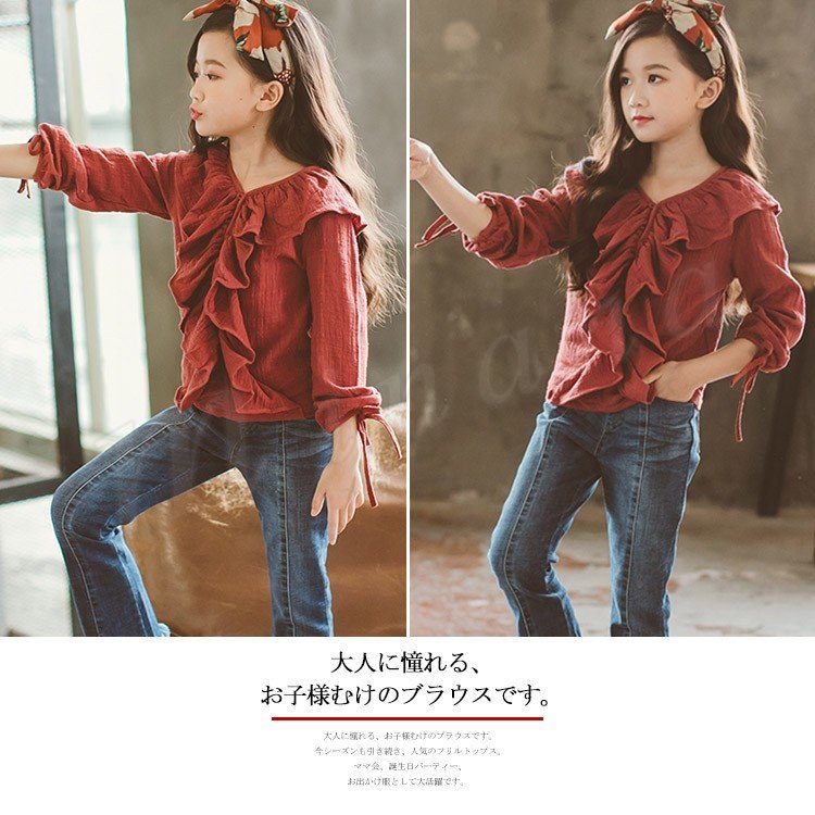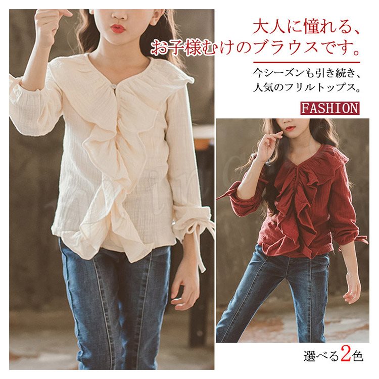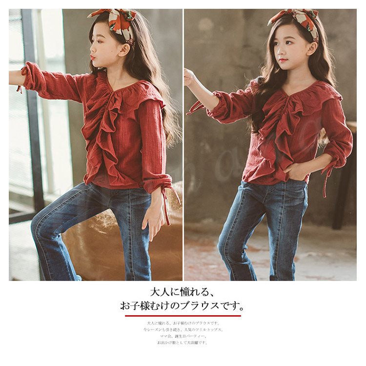 子供服 ブラウス キッズ 長袖 フリル 女の子 vネック ガールズ ジュニア 子供服 トップス インナー 通学 可愛い 新作 110 120 1