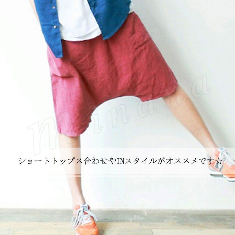 綿麻 サルエルパンツ 5分丈 レディース リネン パンツ サルエルパンツ ショートパンツ リラックス パンツ 無地 部屋着 ルームウェア 春