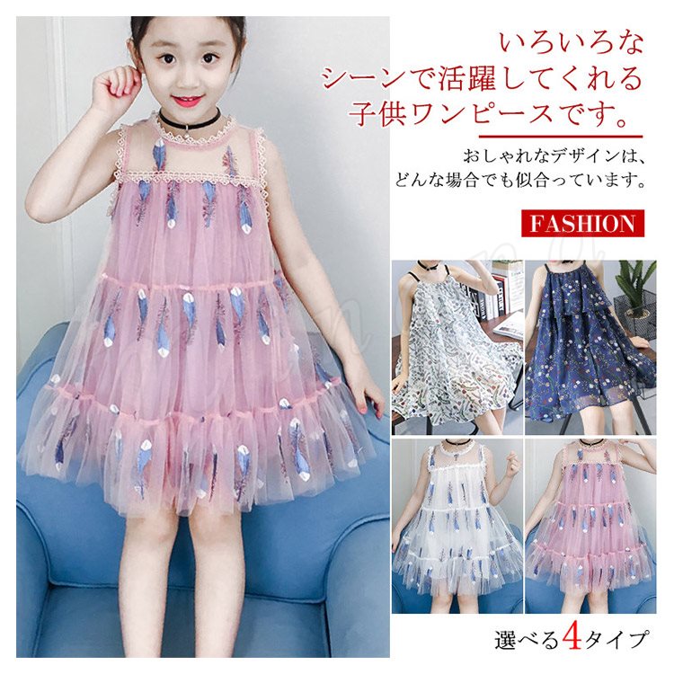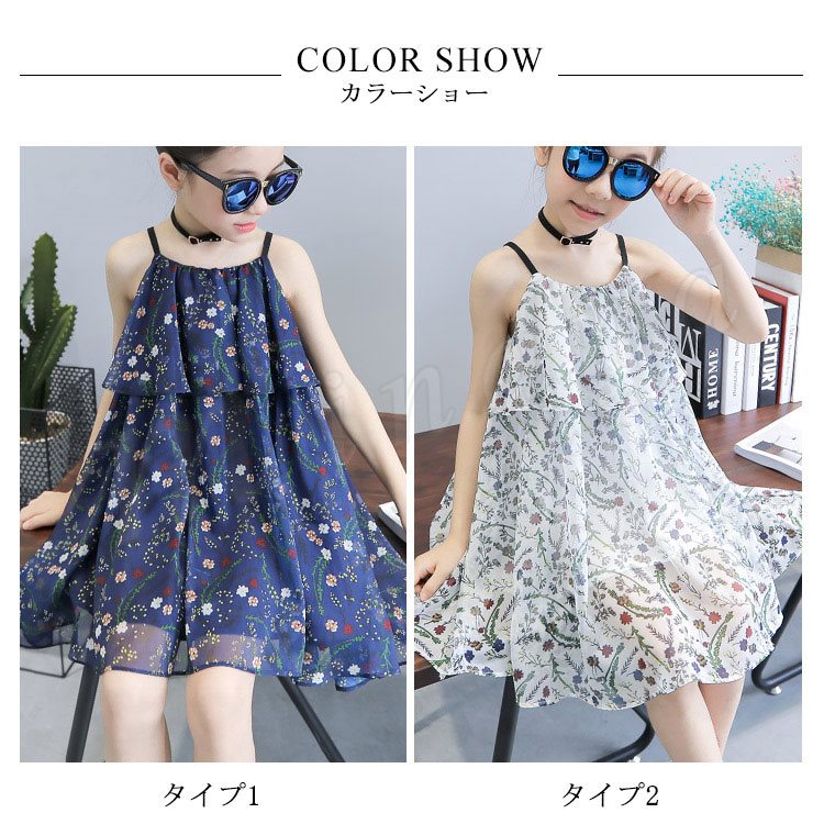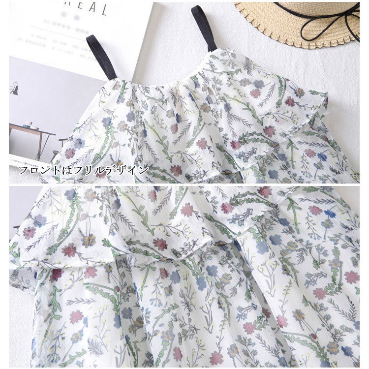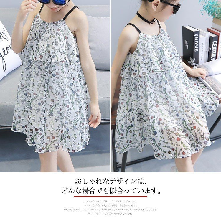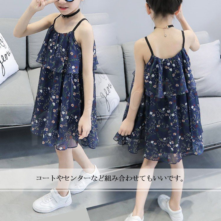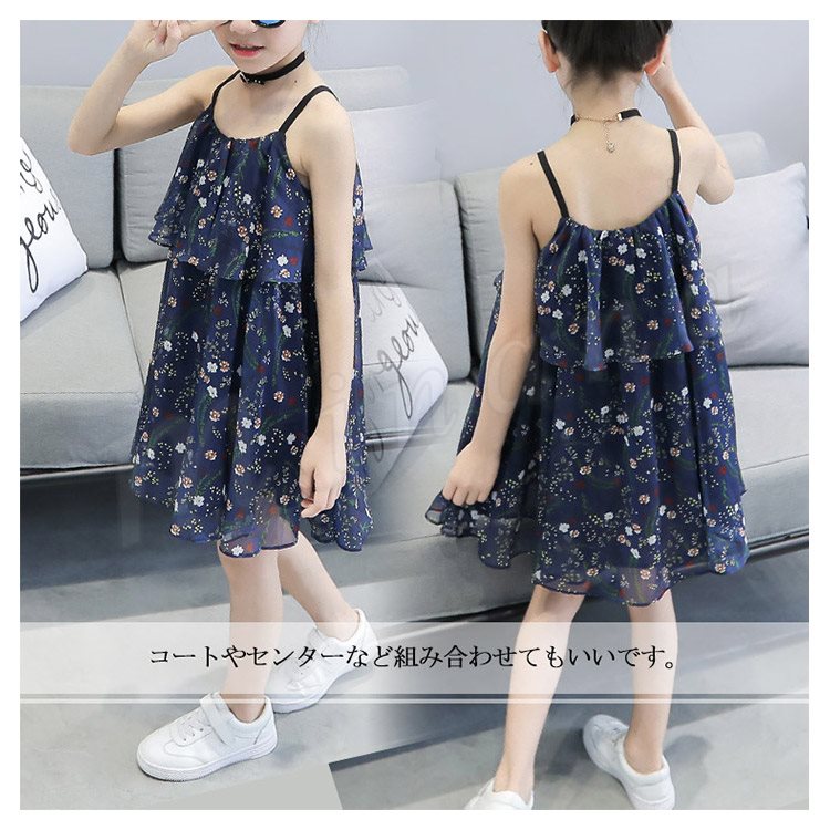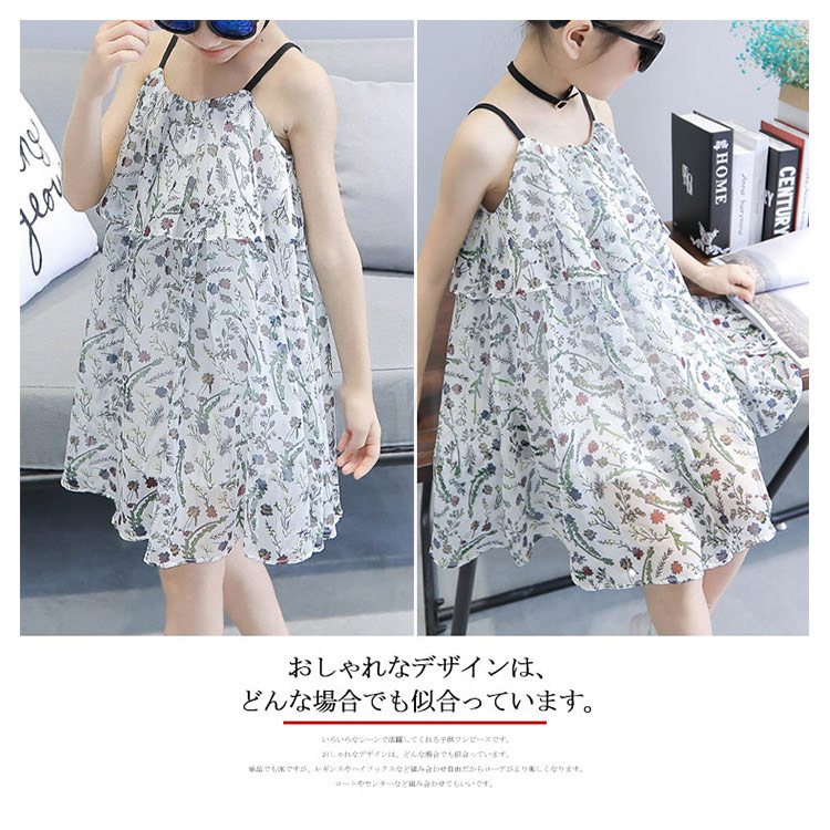 子供服 キャミソールワンピース ノースリーブワンピース シフォンワンピース 女の子 ノースリーブ シフォン 韓国スタイル 花柄 可愛い 110