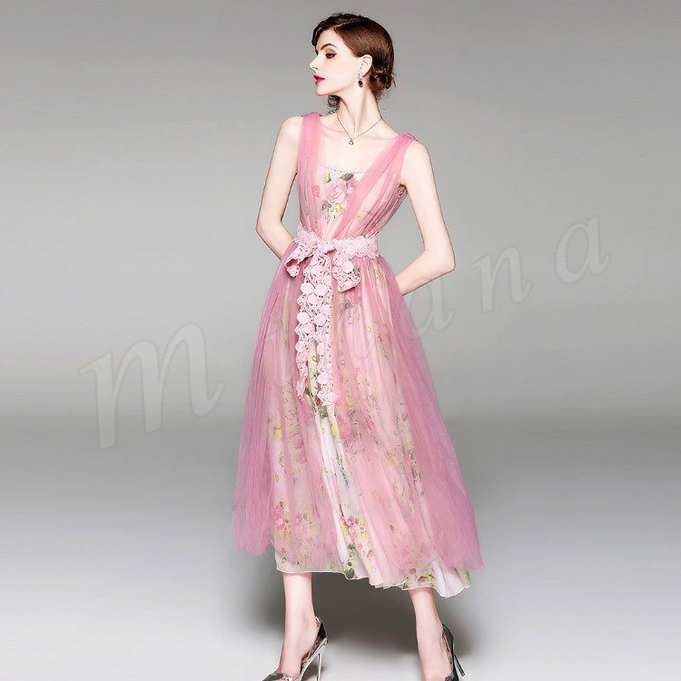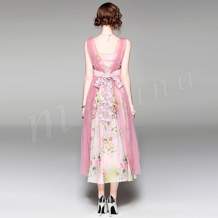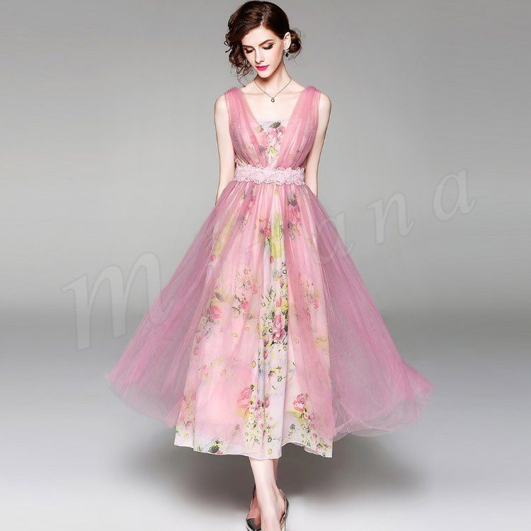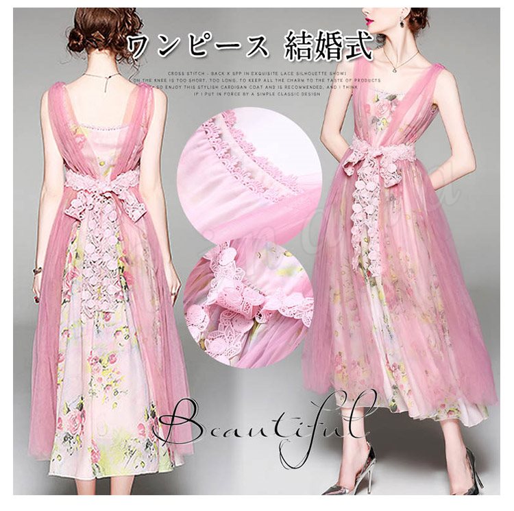 ワンピース 大きいサイズ 膝丈 レディース 結婚式 ワンピース ノースリーブ ロング丈 ワンピース シフォンワンピース フレアワンピース 2018春夏