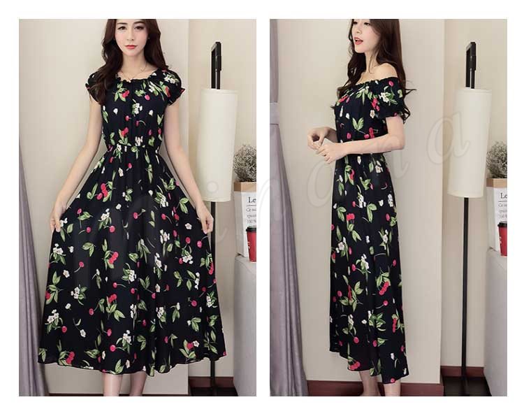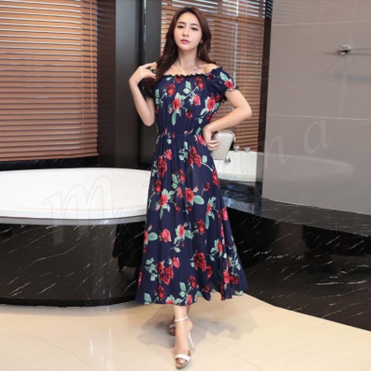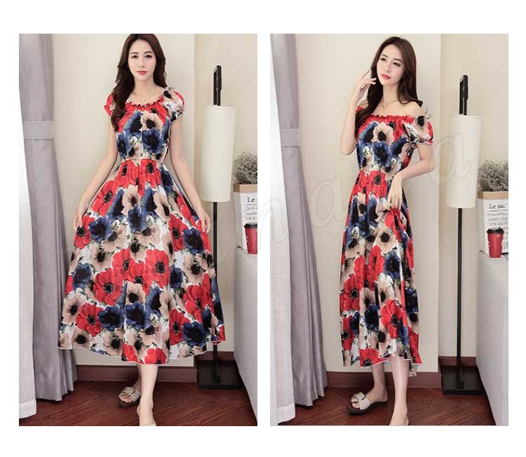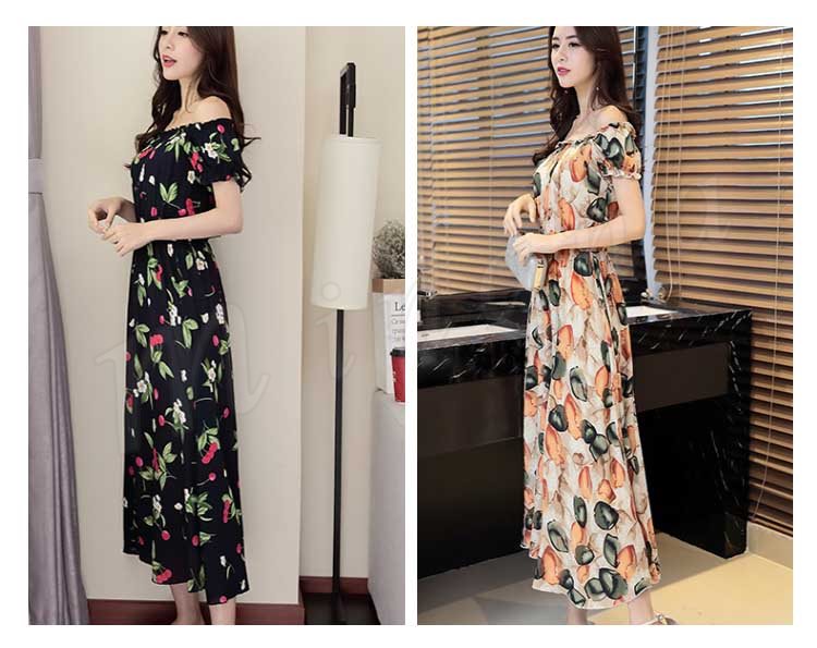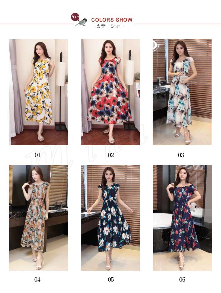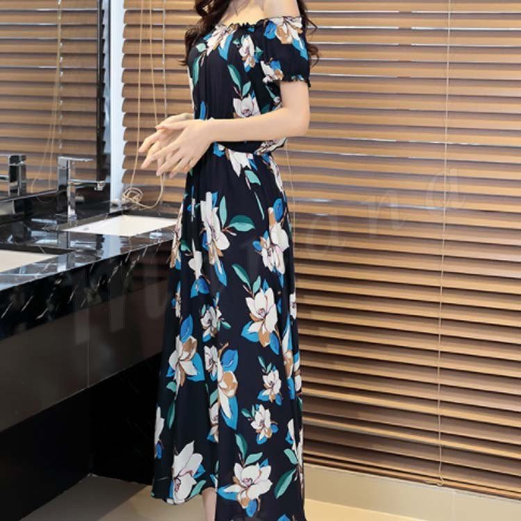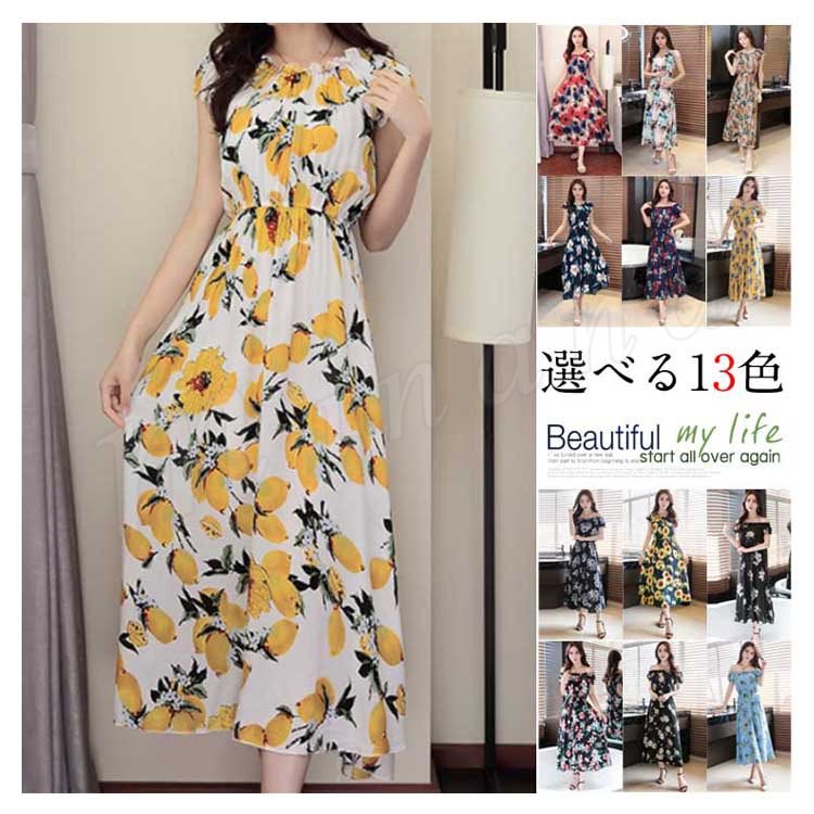 ワンピース リゾートワンピース ロングワンピース ワンピース チュニック 体型カバー ロング丈 半袖 肩出し ウエストゴム プリーツ ギャザー 花柄