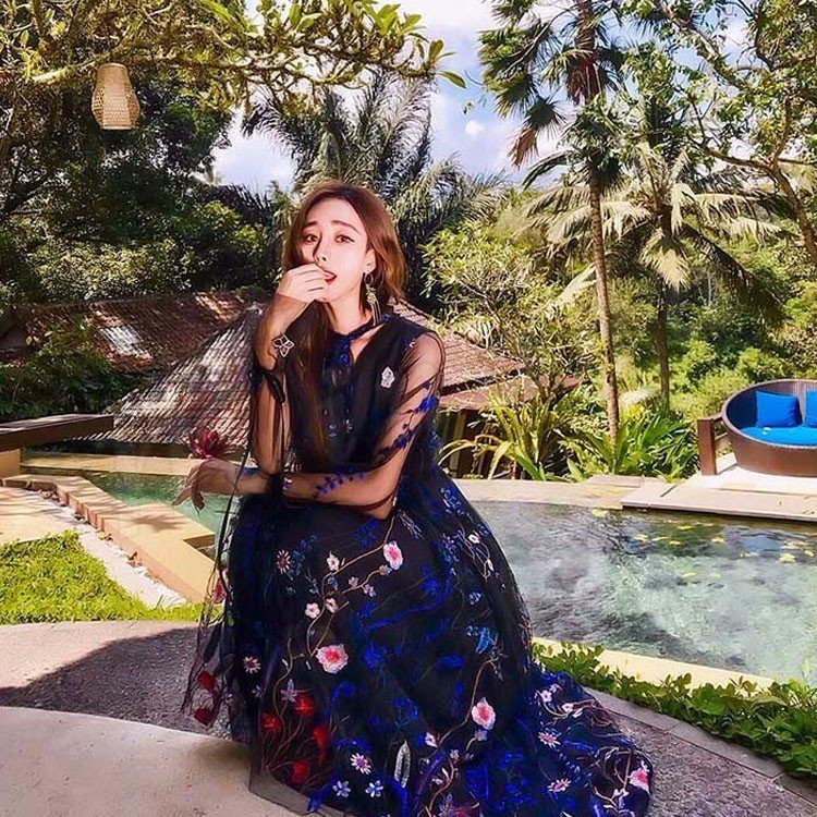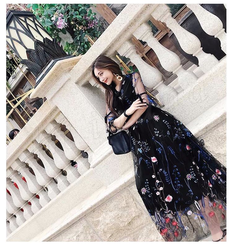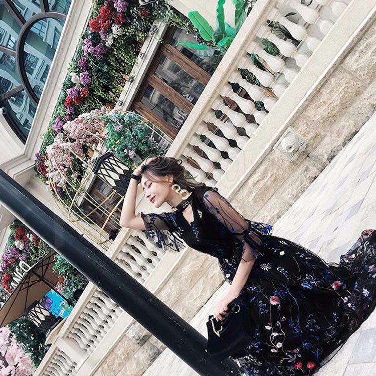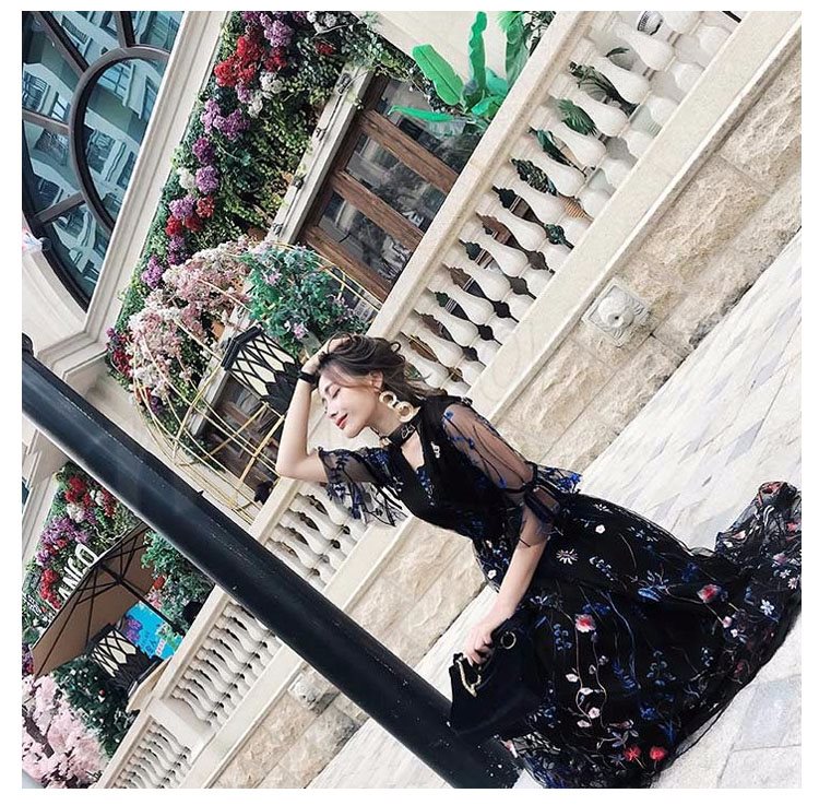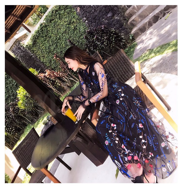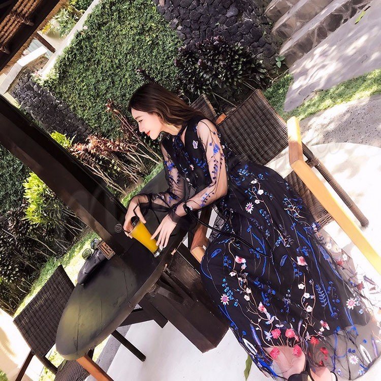 ワンピース レディース リゾートワンピース ロング丈ワンピース チュニック 体型カバー リボンタイ Vネック 長袖 半袖 ボリューム フレア 花柄 刺