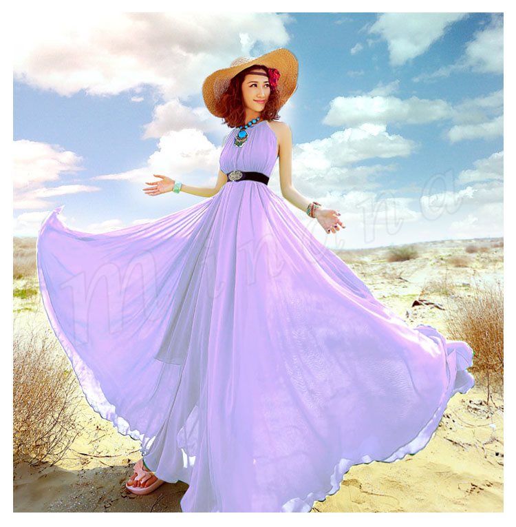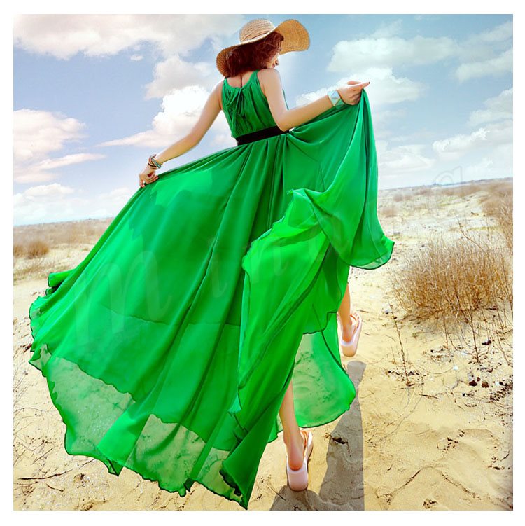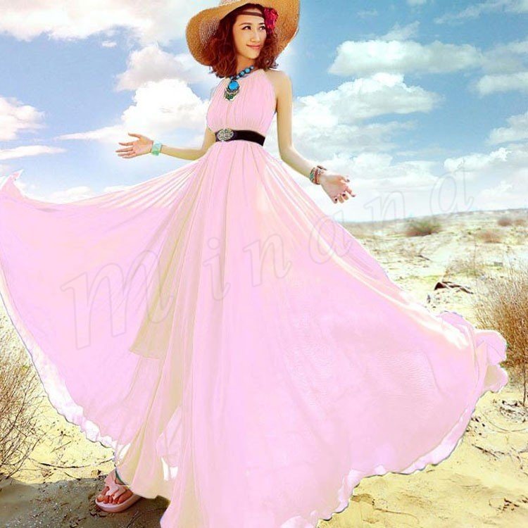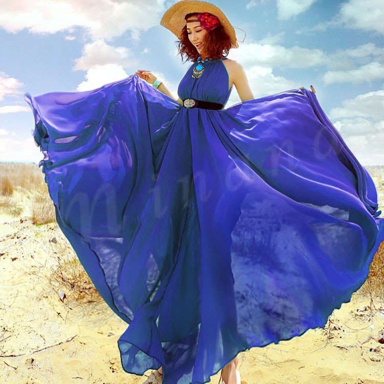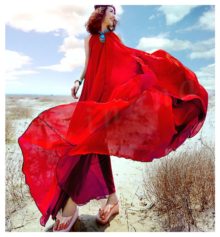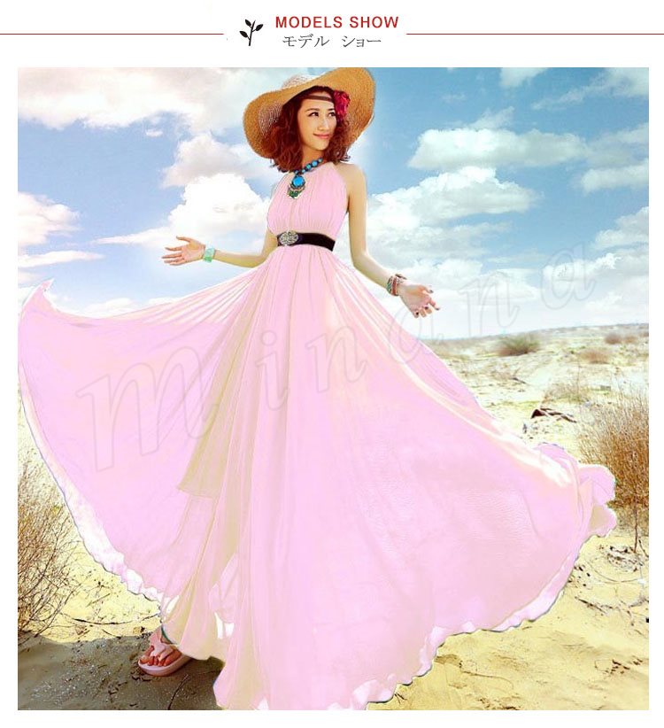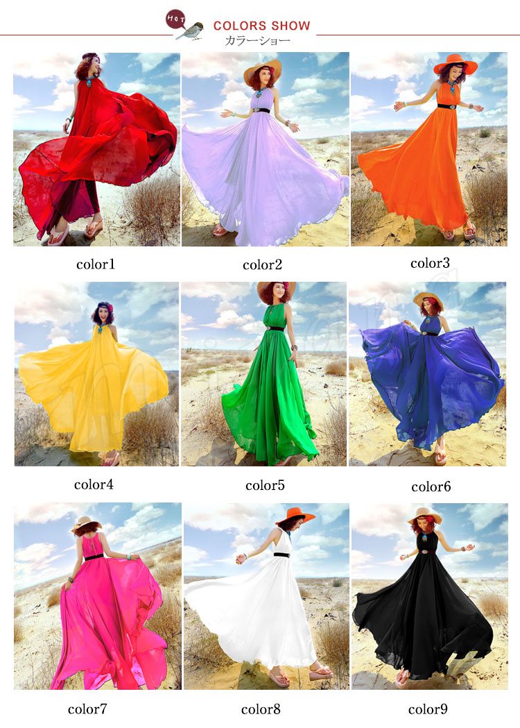 ワンピース レディース ワンピース 夏 ロングワンピ フレアスカート 海ワンピ シフォン リゾートワンピース ボヘミア 大きいサイズ 9色入り