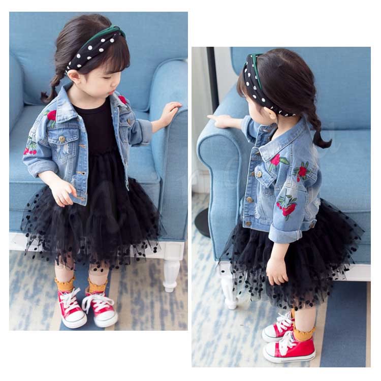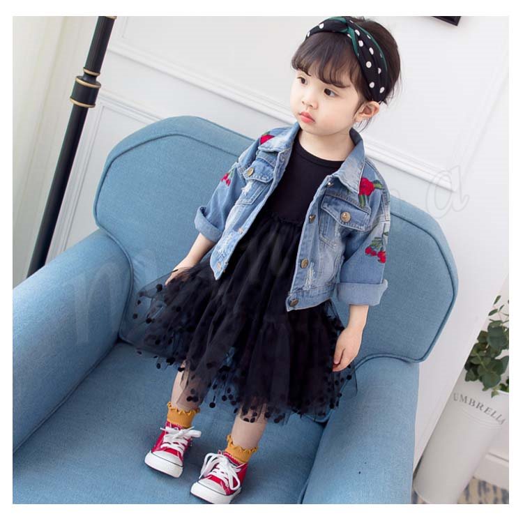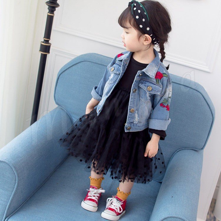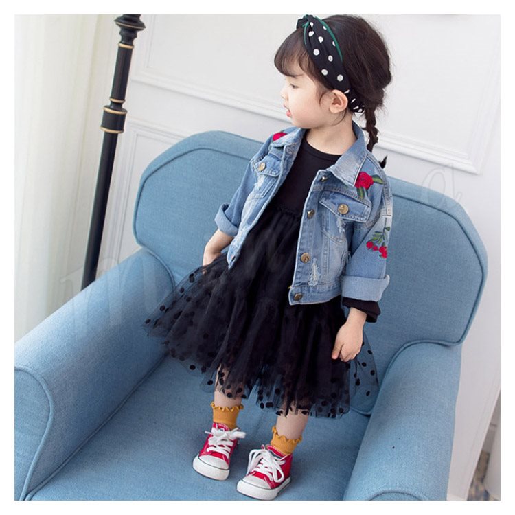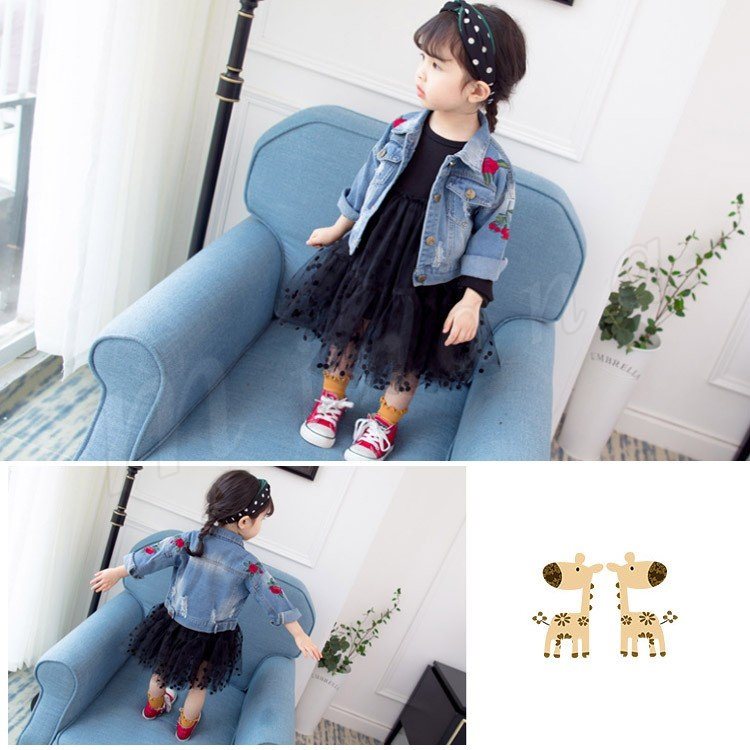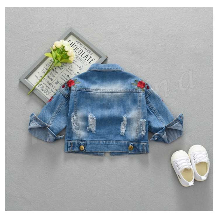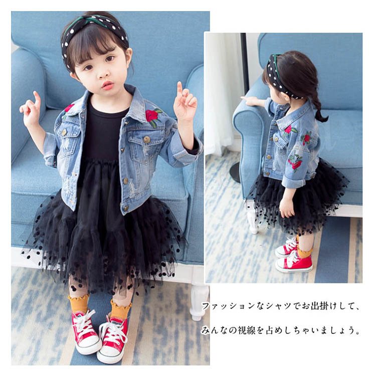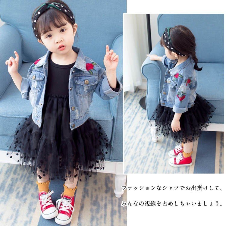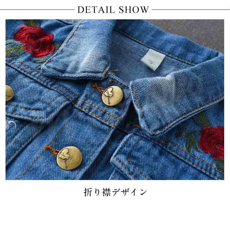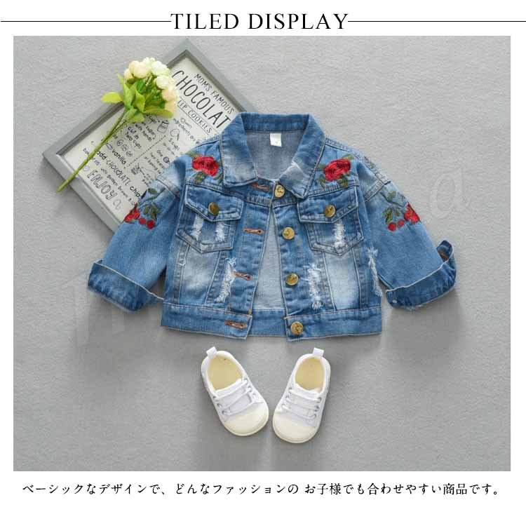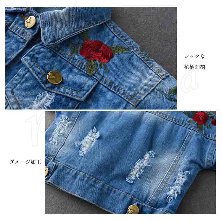 子供服 デニムジャケット アウター コート 女の子 花柄刺繍 ダメージ加工 子供 Gジャン キッズ ジュニア ジージャン ジャケット 可愛い 70 8