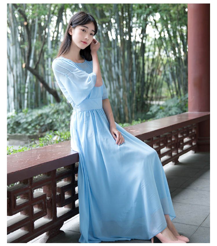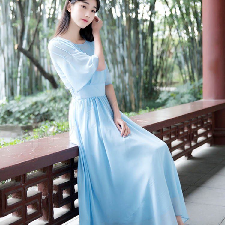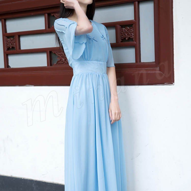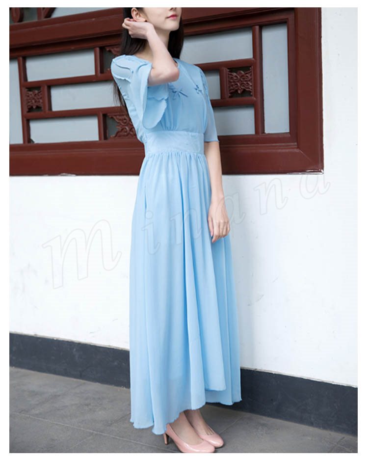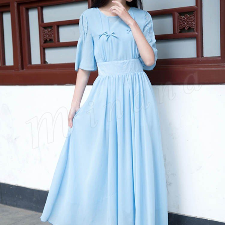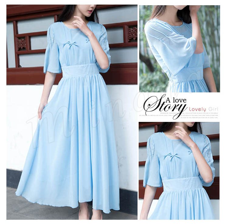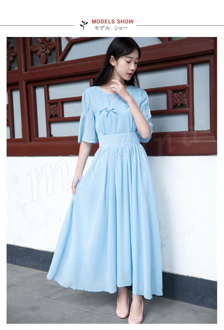 マキシワンピース 夏 半袖 レディース マキシ丈ワンピース ロングワンピース 無地 シフォンワンピース フレア