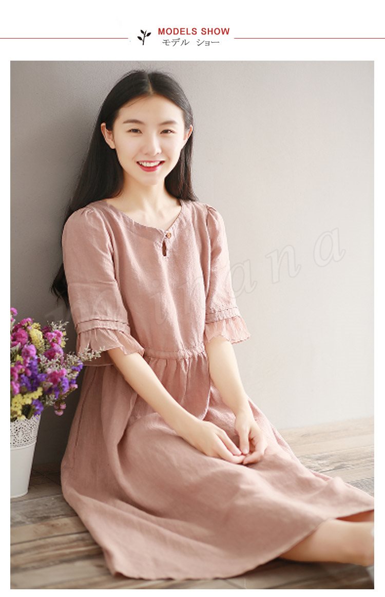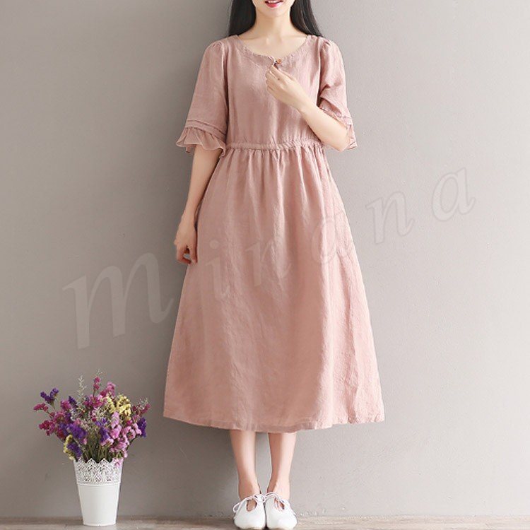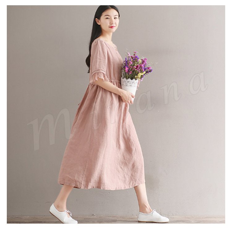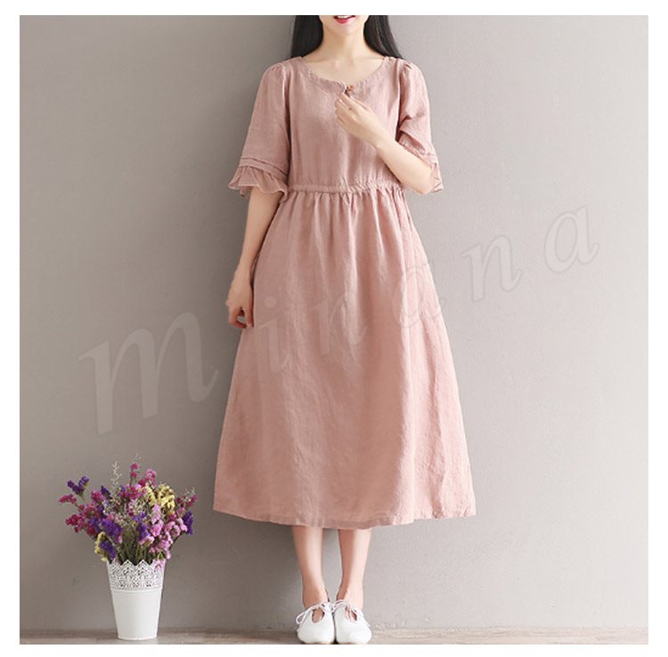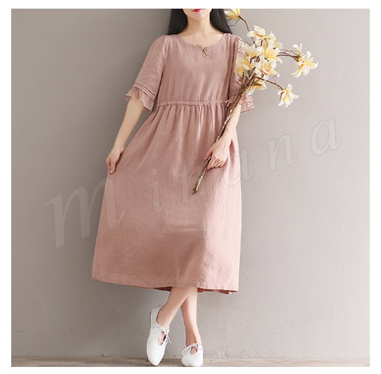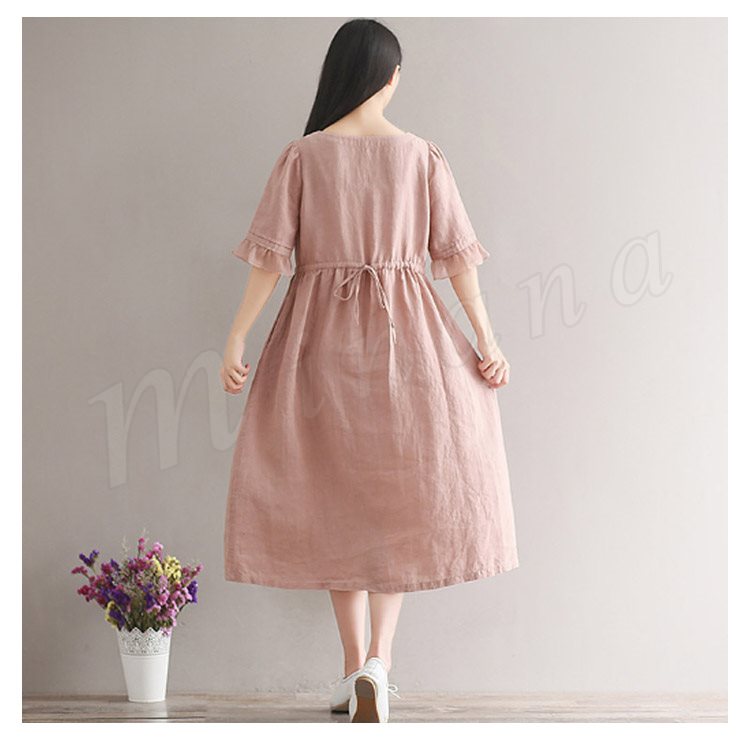 ワンピース ロング丈 レディース 大きいサイズ ワンピース 結婚式 リネン ワンピース リゾート 半袖 森ガール 2018春夏新作