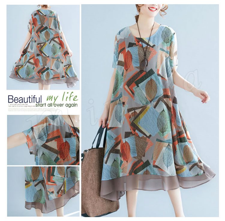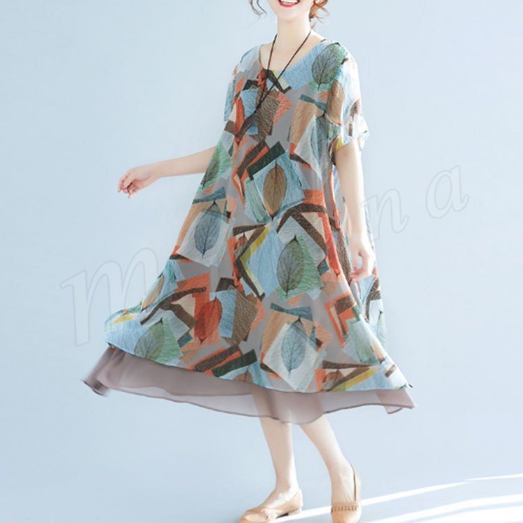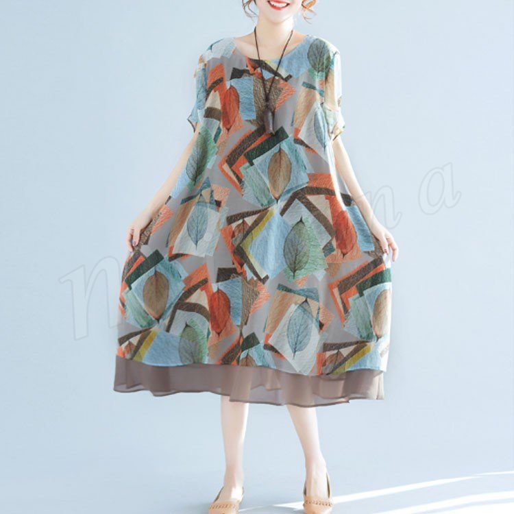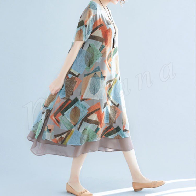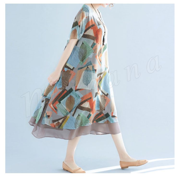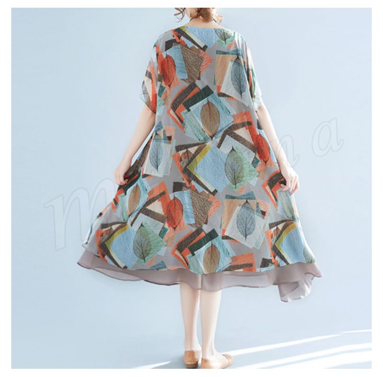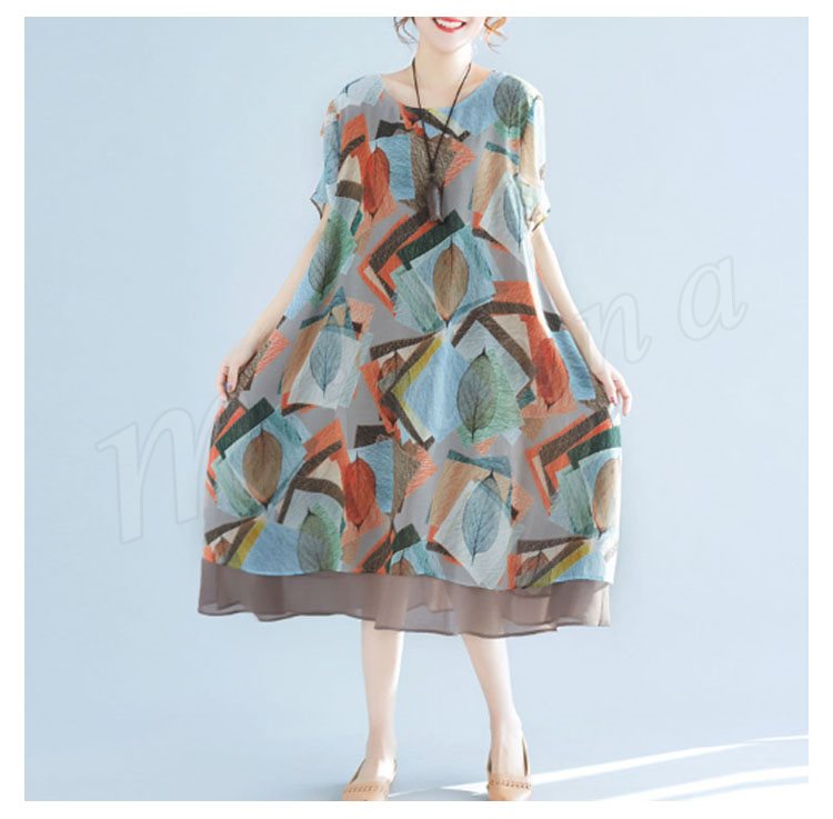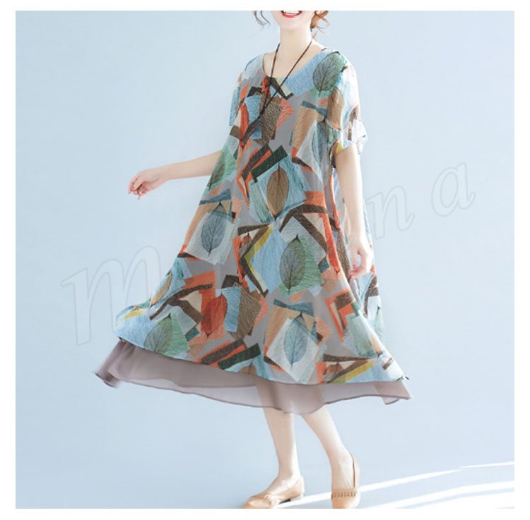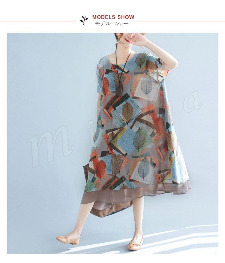 ワンピース レディース ロング丈 ワンピース 花柄 半袖 大きいサイズ フレアワンピース ゆったり シフォンワンピース 2018春夏新作