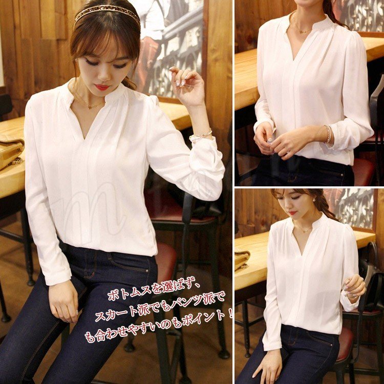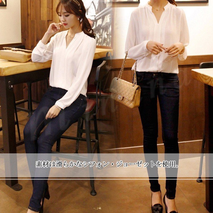 Vネックシフォンブラウス シフォンシャツ Vネック シャツ ブラウス シフォン 長袖シャツ 長袖ブラウス シンプル 無地 春シャツ スキッパ