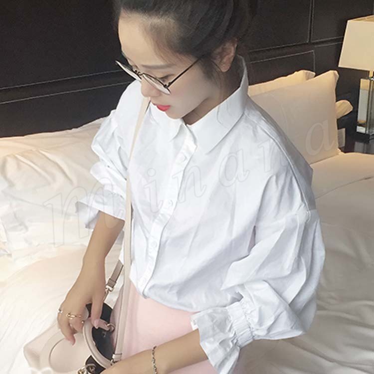 合わせるアイテム次第でどんな雰囲気にも!フリル袖シャツ★レディース/トレンド/秋冬/秋/トップス/ブラウス/シャツ/カラーネック/ホワイトシャ