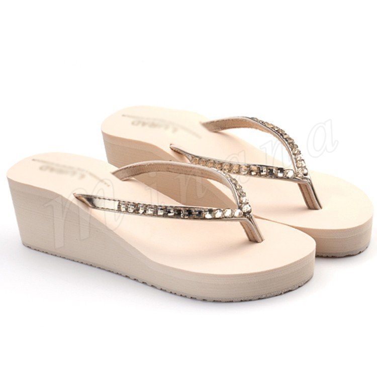 ビジューサンダルビーチサンダルレディース厚底サンダルウェッジソール愛い歩きやすいきらきらレジャー用サンダル美脚女性用