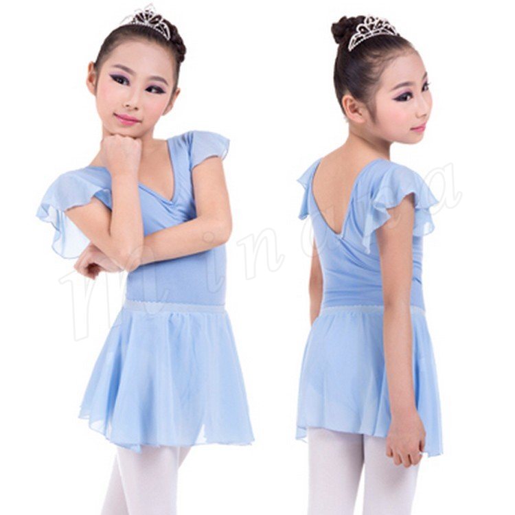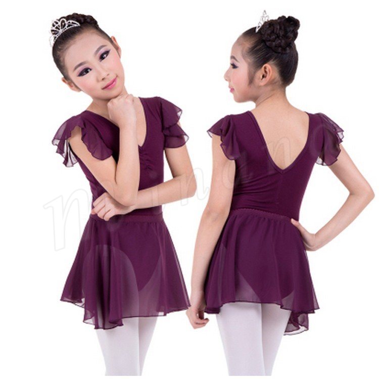 バレエ レオタード 子供用 キッズ ジュニア 大人 レッスン練習着 スカート付き こども 新体操 バレエ用品 半袖 シフォンスカート コットン