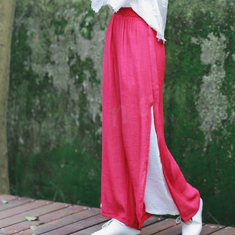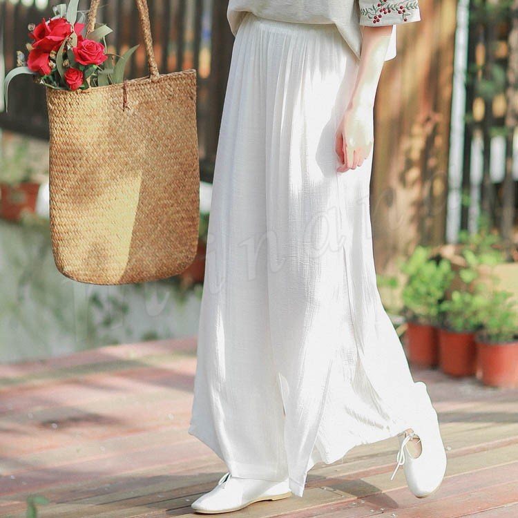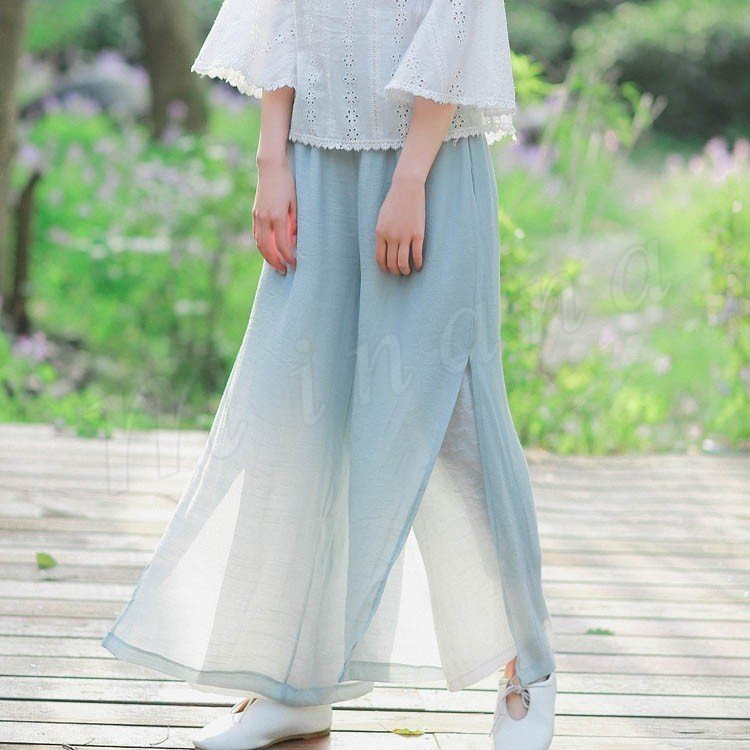 [5色展開]ワイドパンツ ガウチョパンツ ボトムス ワイド レディース 綿麻 コットン リネン ロング丈 9分丈 ハイウエスト 大きいサイズ
