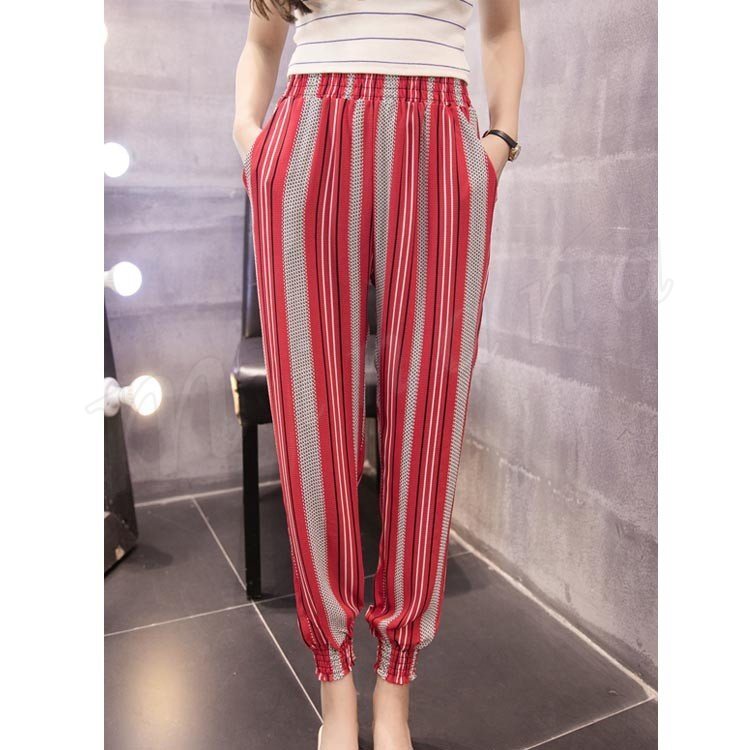 ジョガーパンツ シフォンパンツ ストライプ 大きいサイズ ボトムス レディース 裾絞り 裾絞りパンツ ジョグパンツ サルエルパンツ ウエス