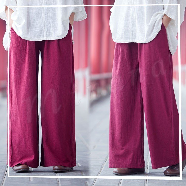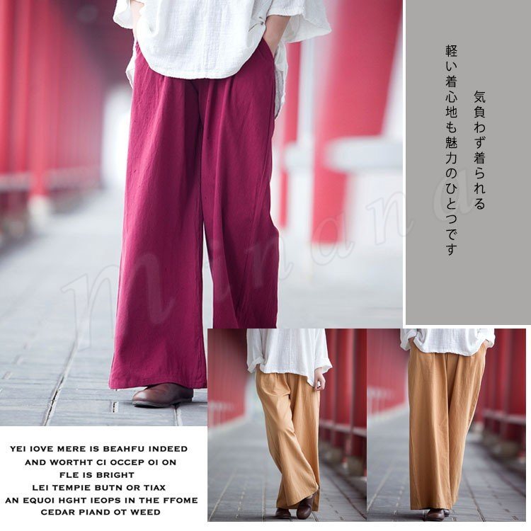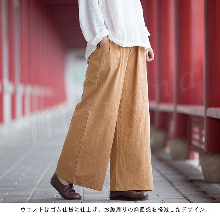 リネン ガウチョパンツ ロングパンツ 綿麻 ワイドパンツ 9分丈 リネンパンツ リラックス パンツ リラックスパンツ 綿麻 パンツ サルエルパ