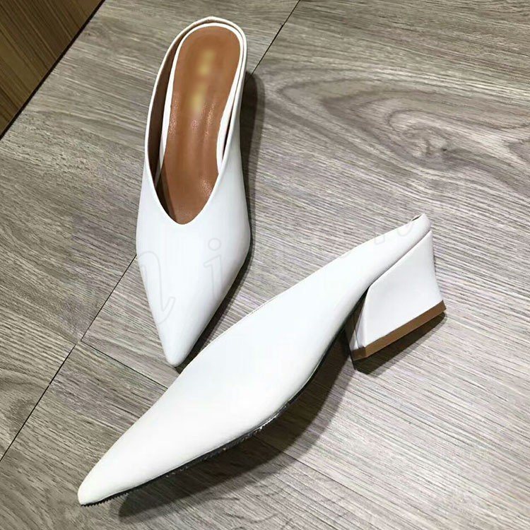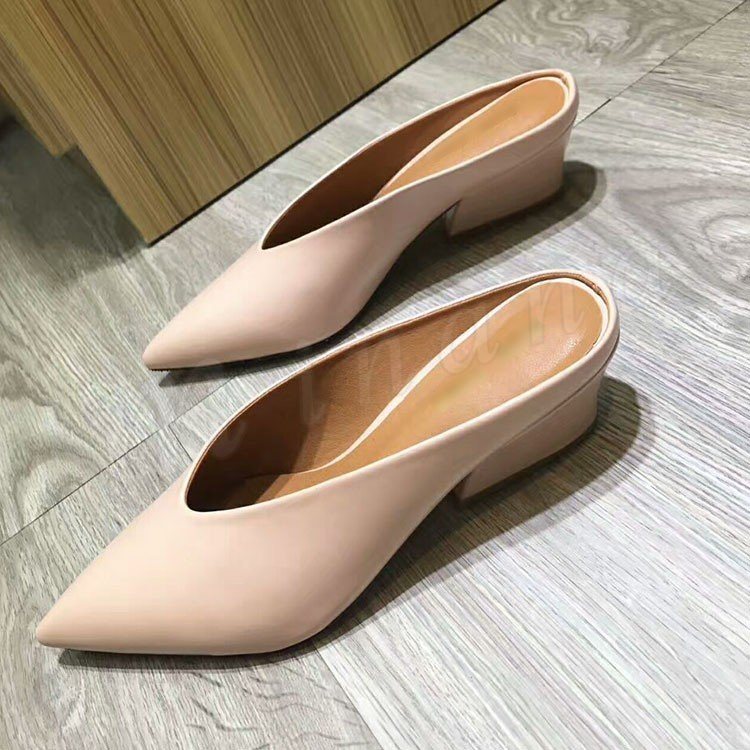 ポインテッドトゥ スリッパ サンダル バブーシュ チャンキーヒール スリッパサンダル スリッパパンプス レディース サンダル スリッパサンダル