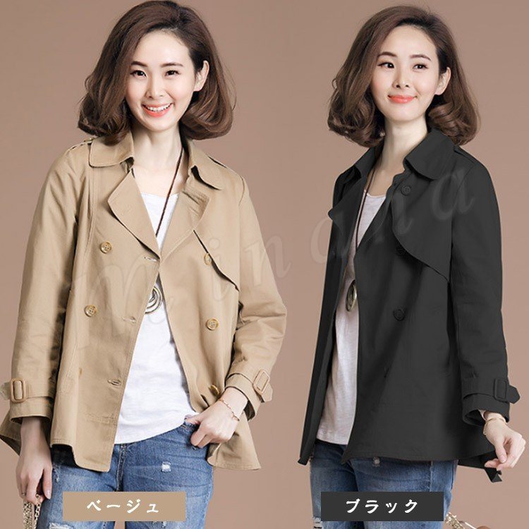 トレンチジャケット ショートコート オフィス 通勤 エレガント スプリングコート 春トレンチ トレンチコート レディース ショート丈 Aライン