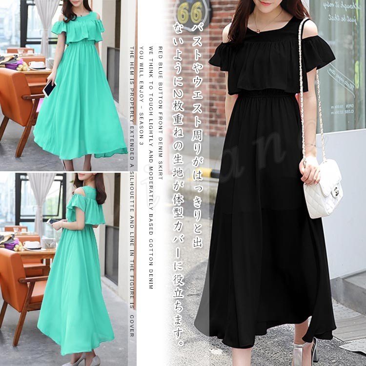 涼しげ感が溢れる通気性良いシフォン素材を採用して注目された肩出しデザインのワンピースです。