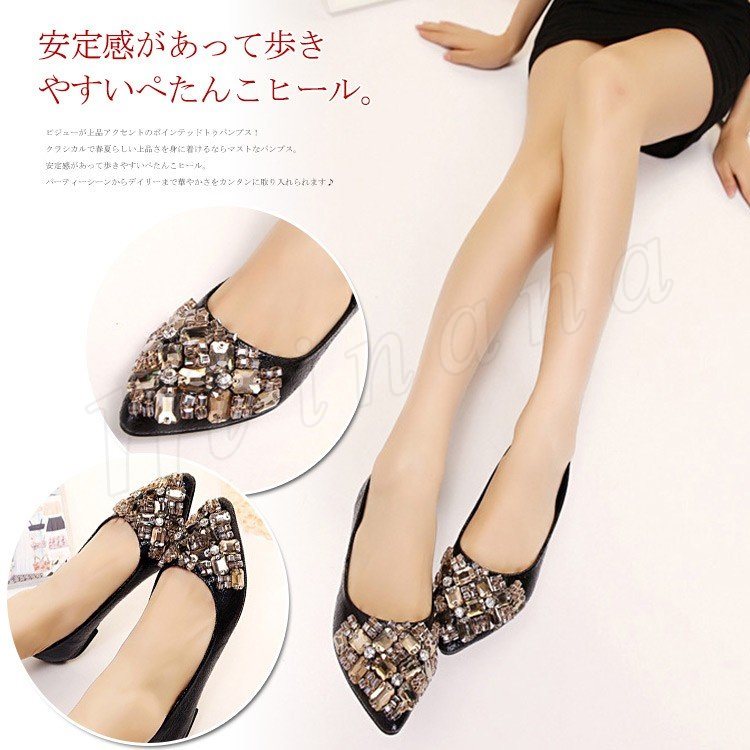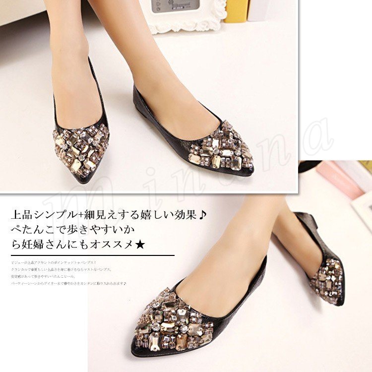 ポインテッドトゥ パンプス レディース ビジュー パンプス キラキラ 痛くない ぺたんこ ぺたんこ靴 フラットパンプス フラットシューズ