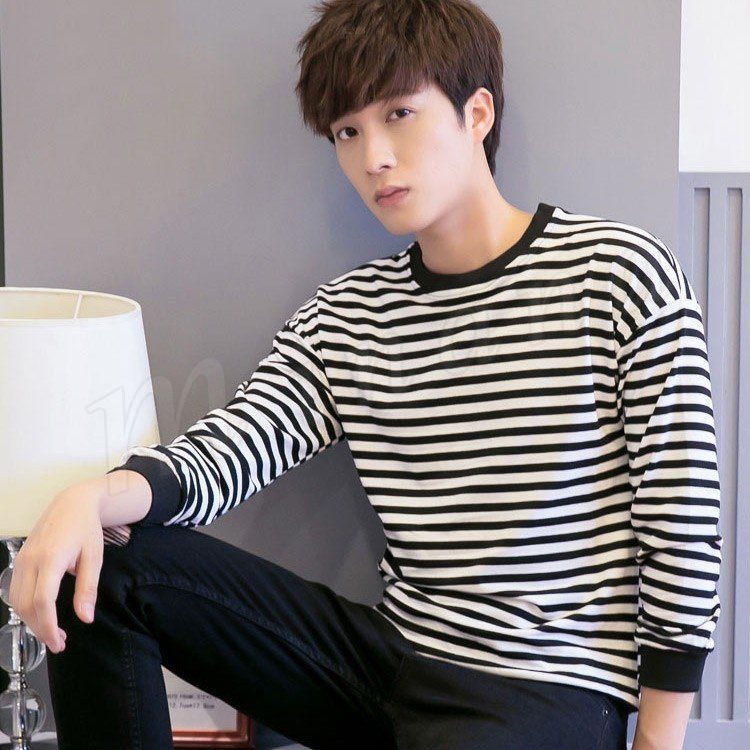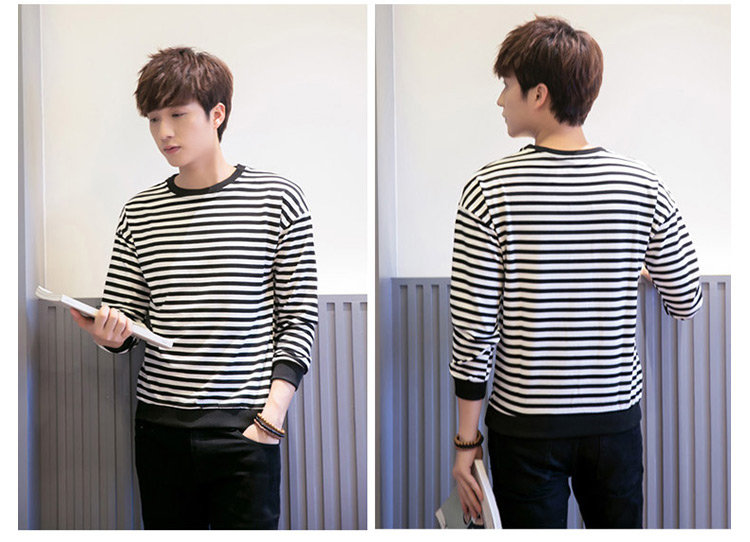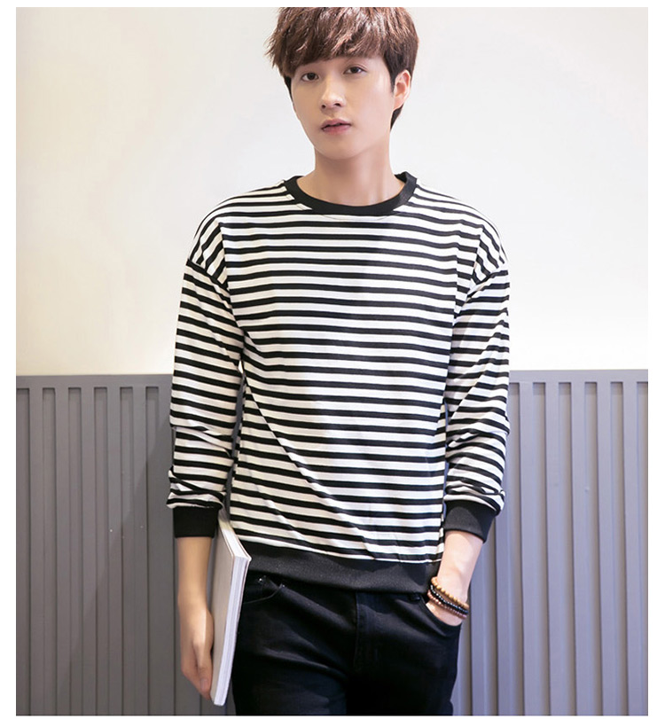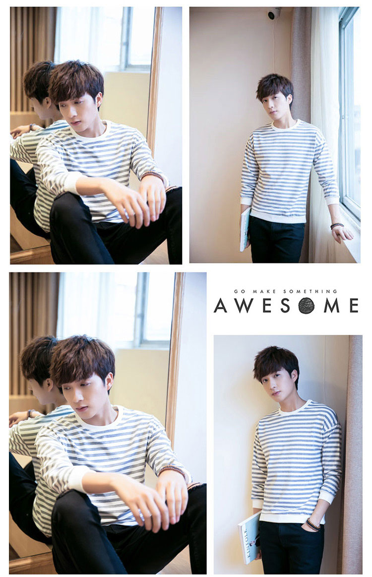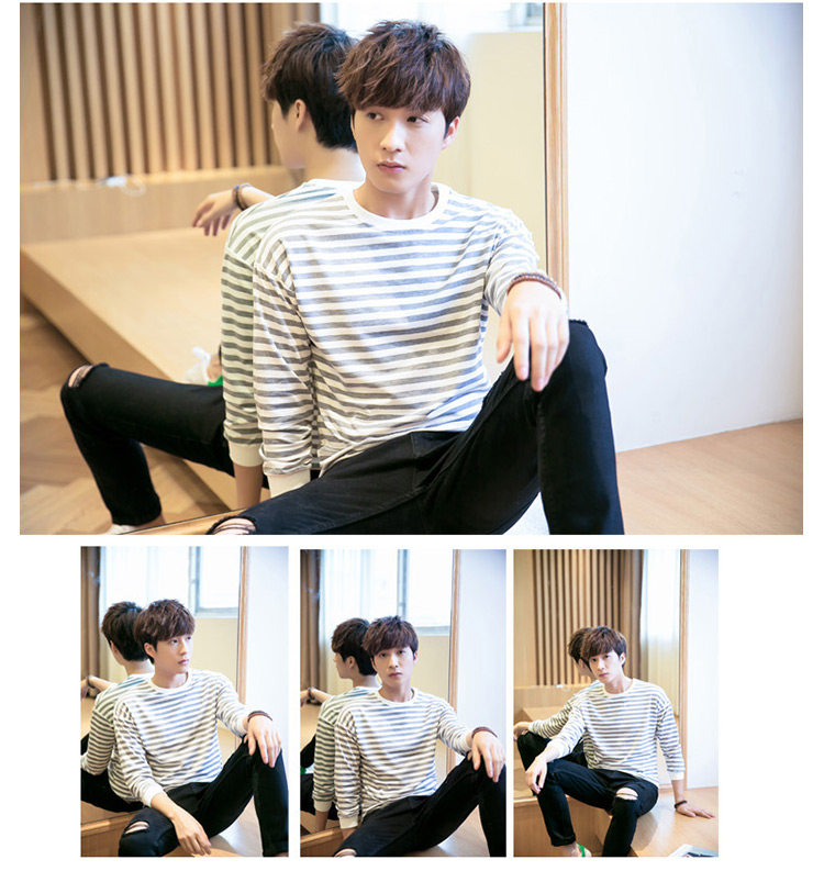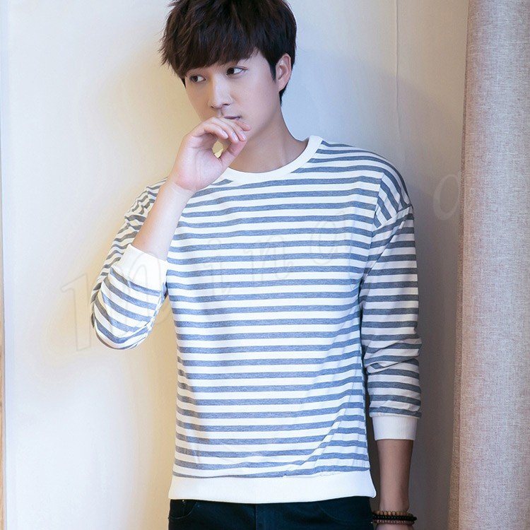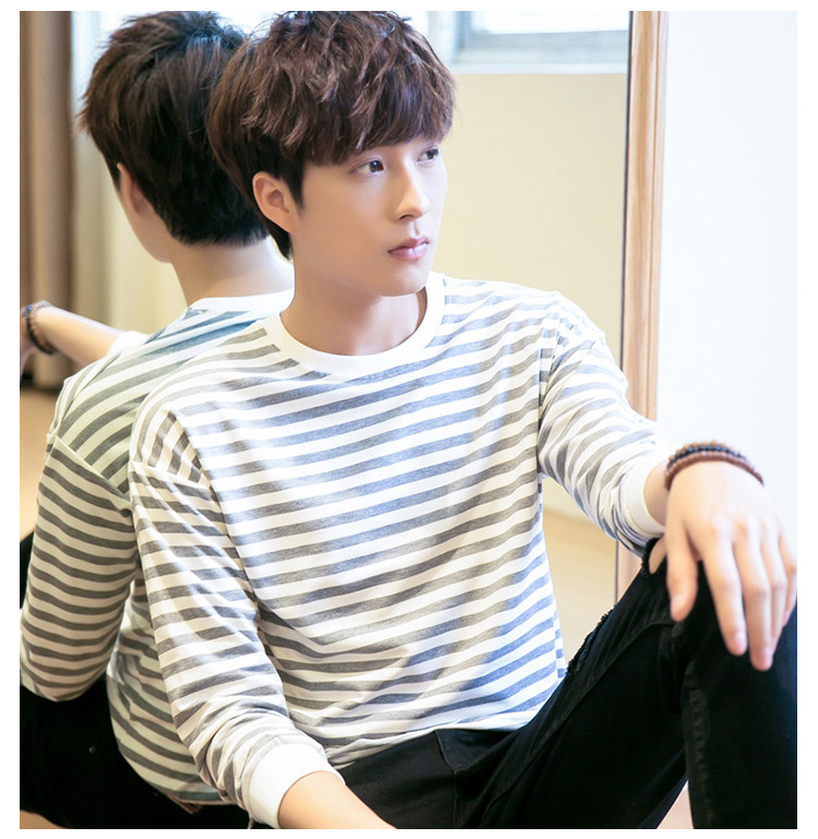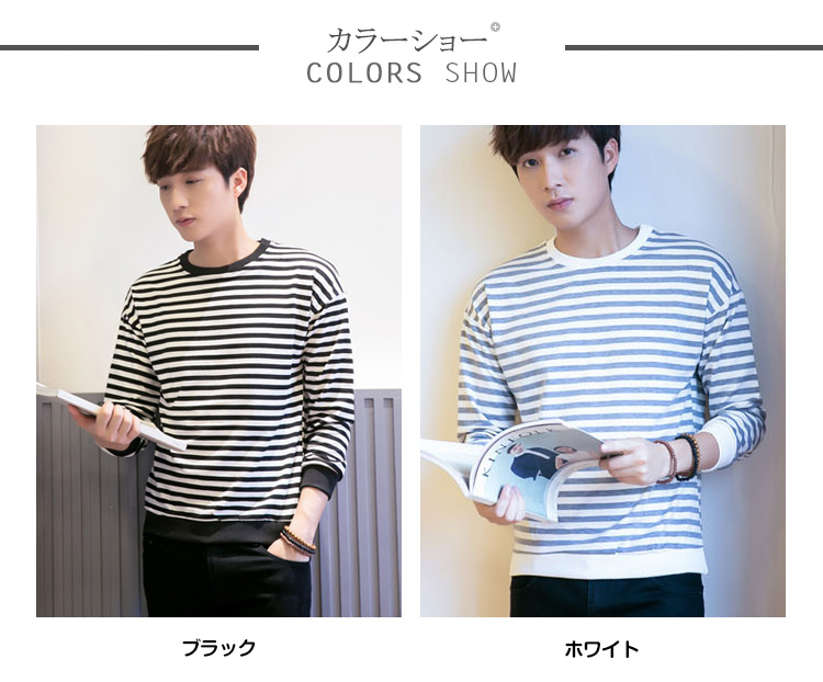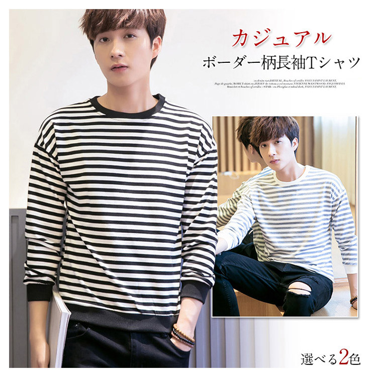 2018春新作 メンズTシャツ ボーダー柄 長袖Tシャツ クルーネック トップス 薄手 シンプル カジュアル 春服 ファッション 春秋 インナー