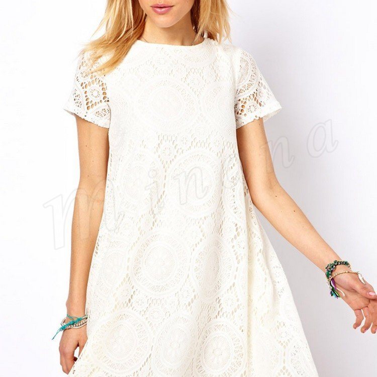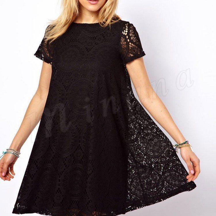 レースワンピース ショート 半袖ワンピ 透け感有り Aラインワンピース チュニックワンピース フレアワンピース 夏ワンピース オシャレ