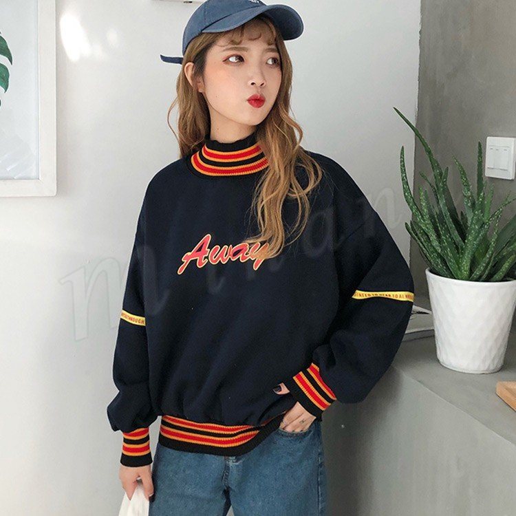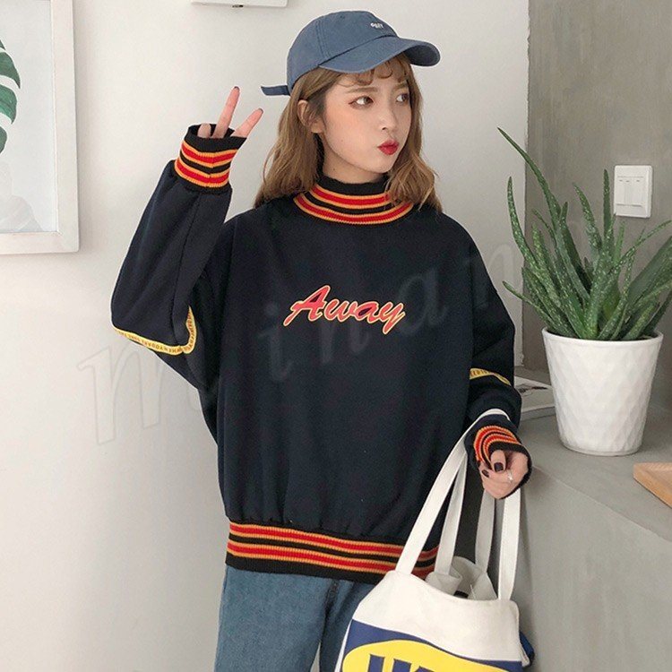 2018春秋新作/トレーナー/パーカー/レディース/ハイネック/長袖/ゆったり/スウェット/プルオーバー/カジュアル/シンプル/トップス/おしゃれ