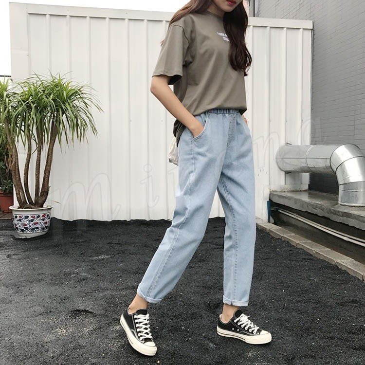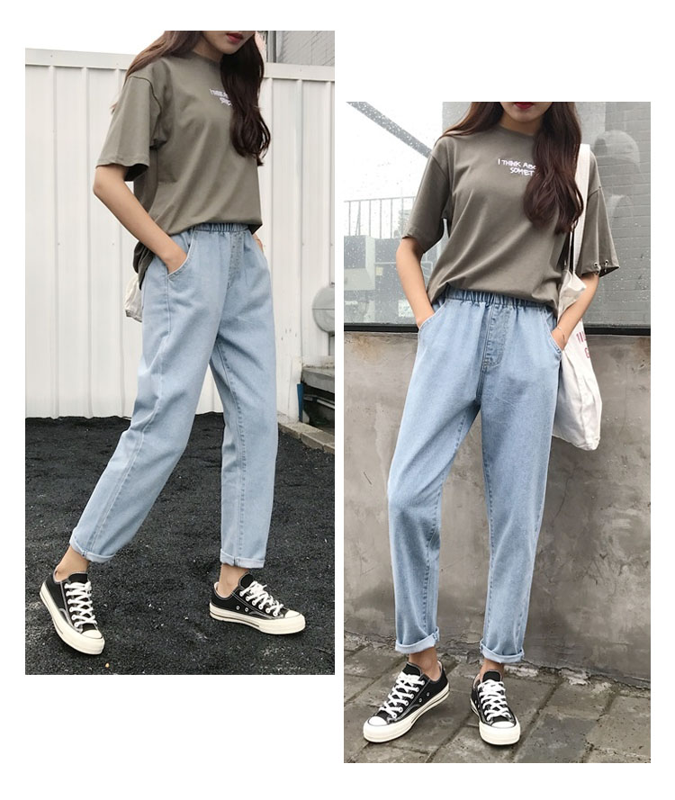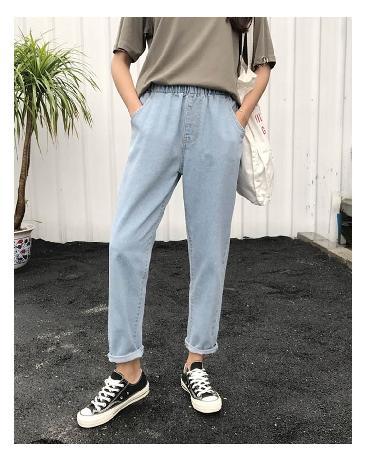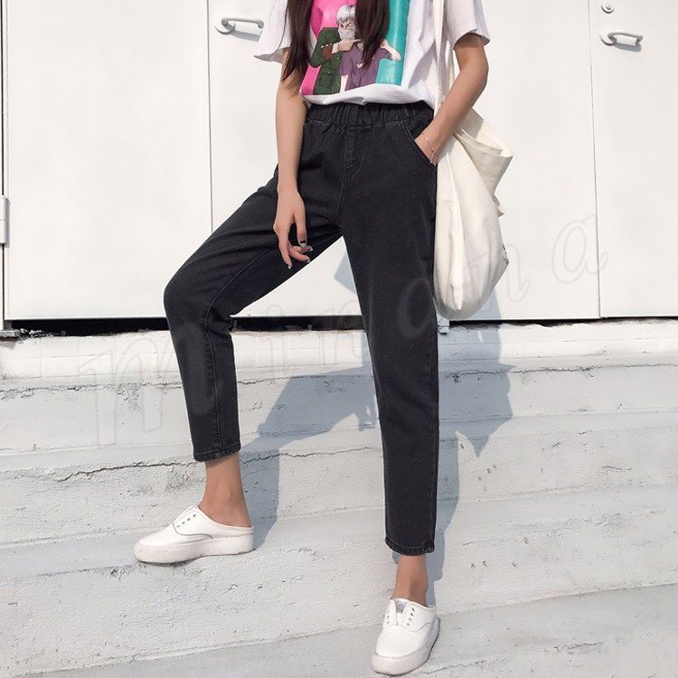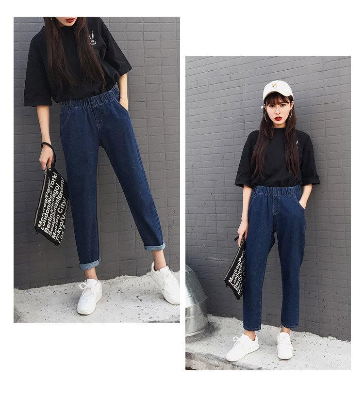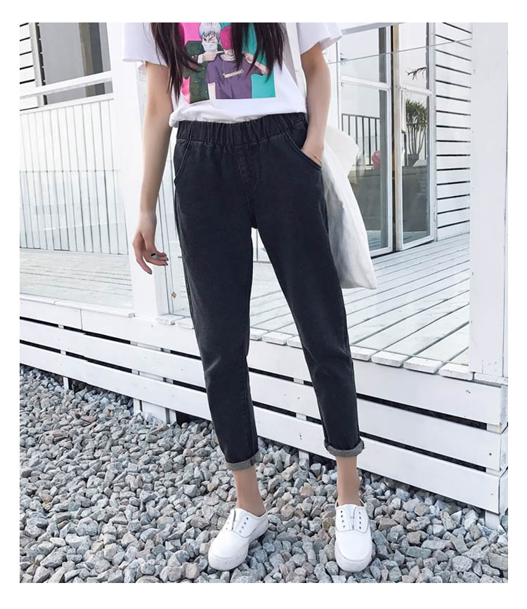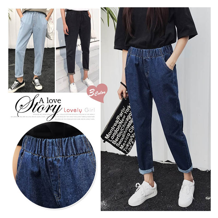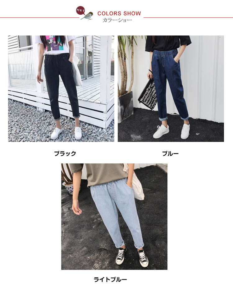 2018春新作/デニムパンツ/テーパードパンツ/サルエル/レディース/九分丈/ウエストゴム/ジーンズ/ファッション/カジュアル/おしゃれ/春夏秋/