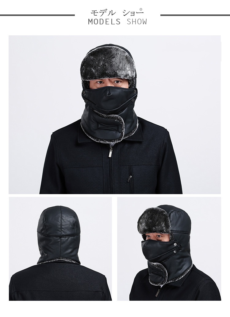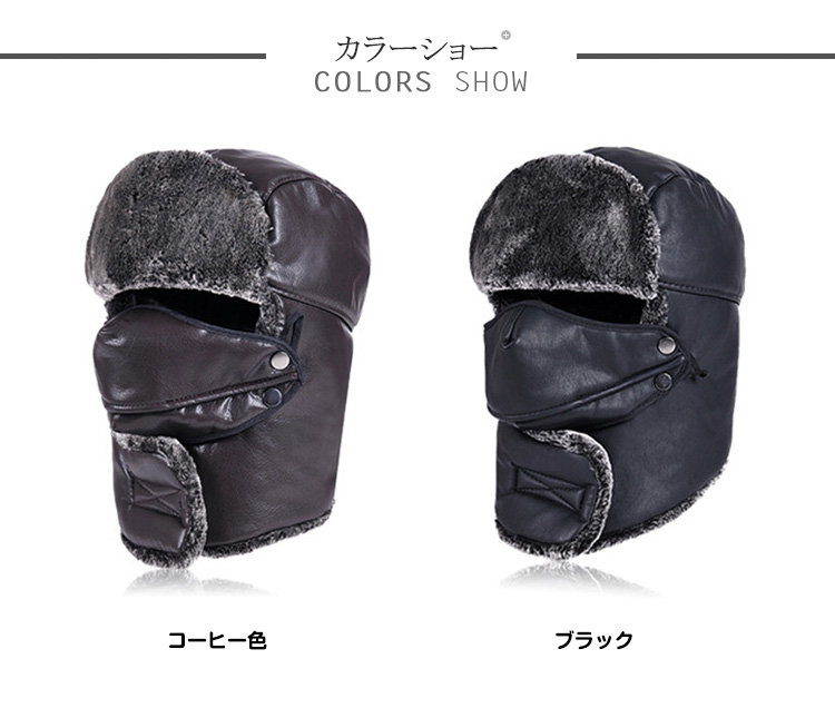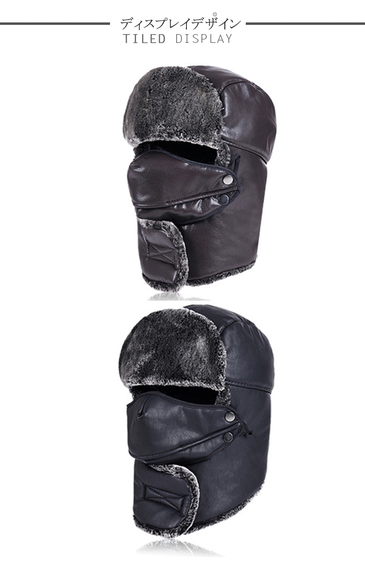 2018秋冬新作/フライトキャップ/メンズ/ロシア帽/毛皮帽子/フェイクファー/パイロットキャップ/耳あて付き/マスク付き/厚手/防寒/あったか/