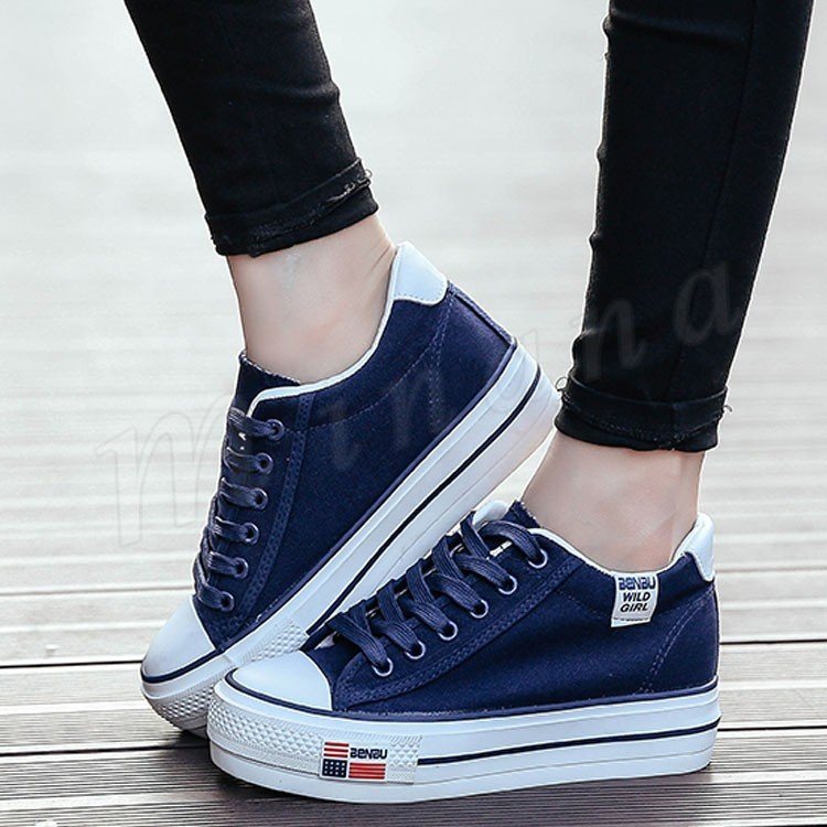 2018春新作/スニーカー/キャンバス/レディース/厚底/インヒール/レースアップ/ファッション/おしゃれ/疲れにくい/カジュアルシューズ/靴/春