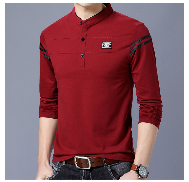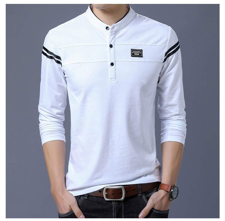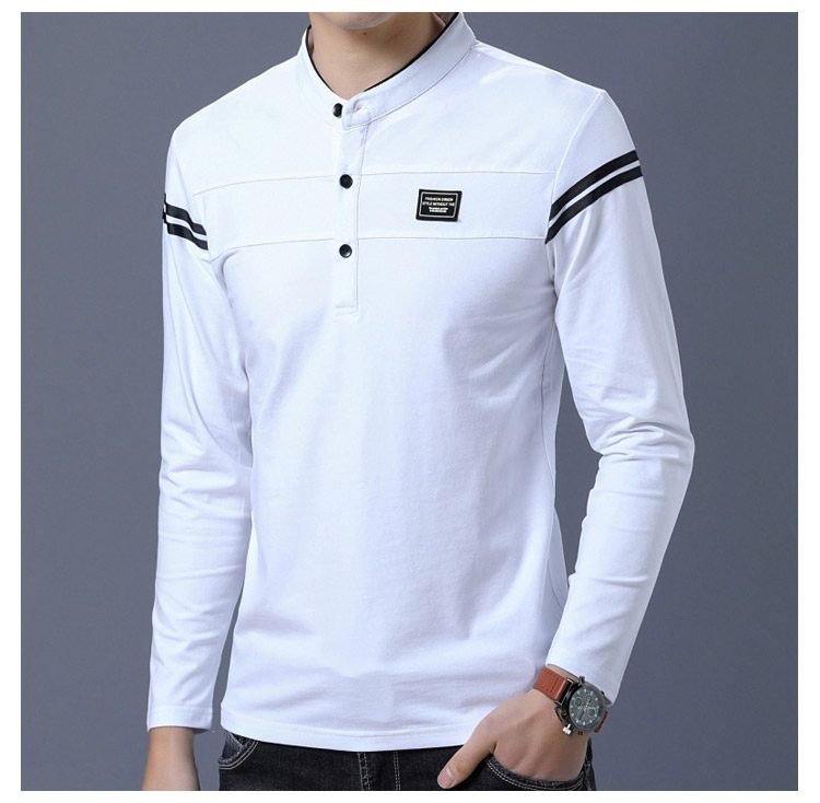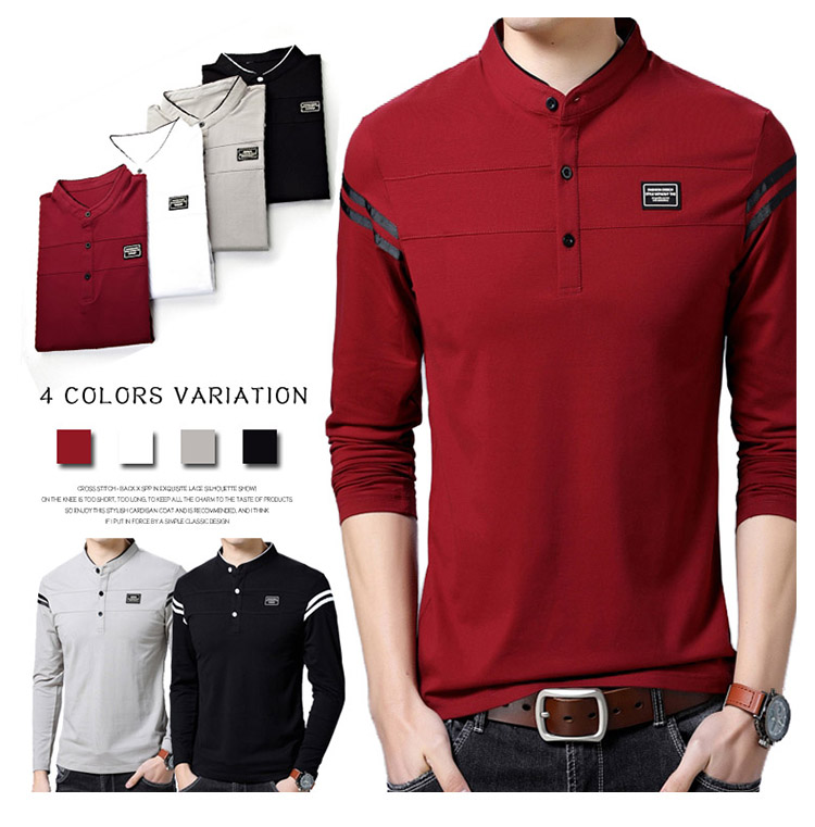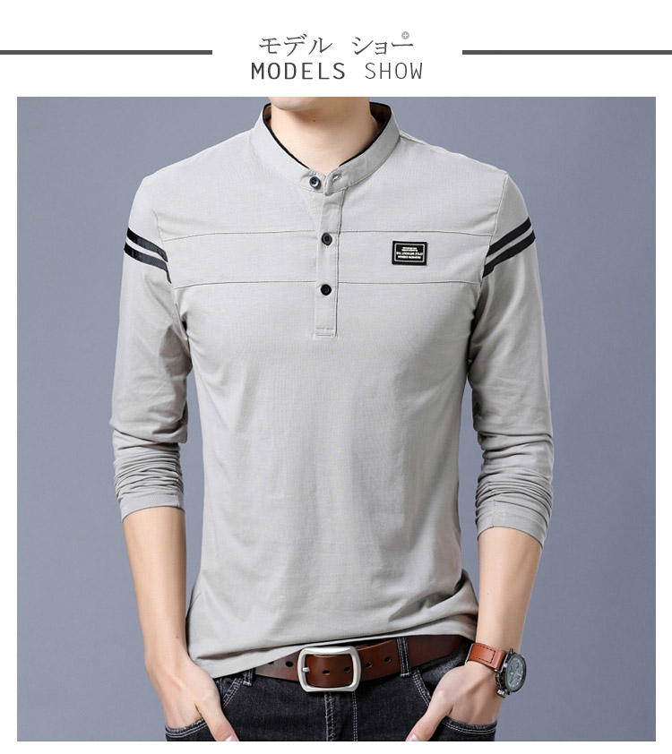 2018秋新作 ポロシャツ メンズ Tシャツ 長袖 立ち襟 細身 スリム カジュアル かっこいい きれいめ トップス 男性用 春秋 おしゃれ