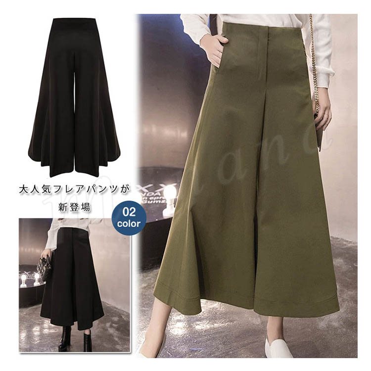 パンツ/レディースズボン/フレアパンツ/ワイドパンツ/9分丈パンツ/ガウチョパンツ/スカーチョ/ボトムス/カジュアルパンツ/ハイウェスト/大き
