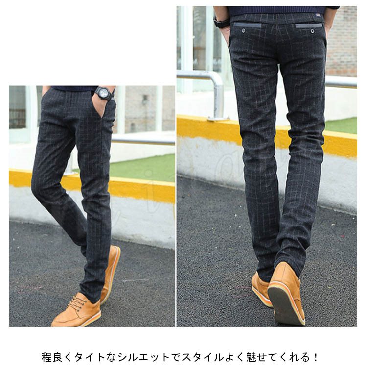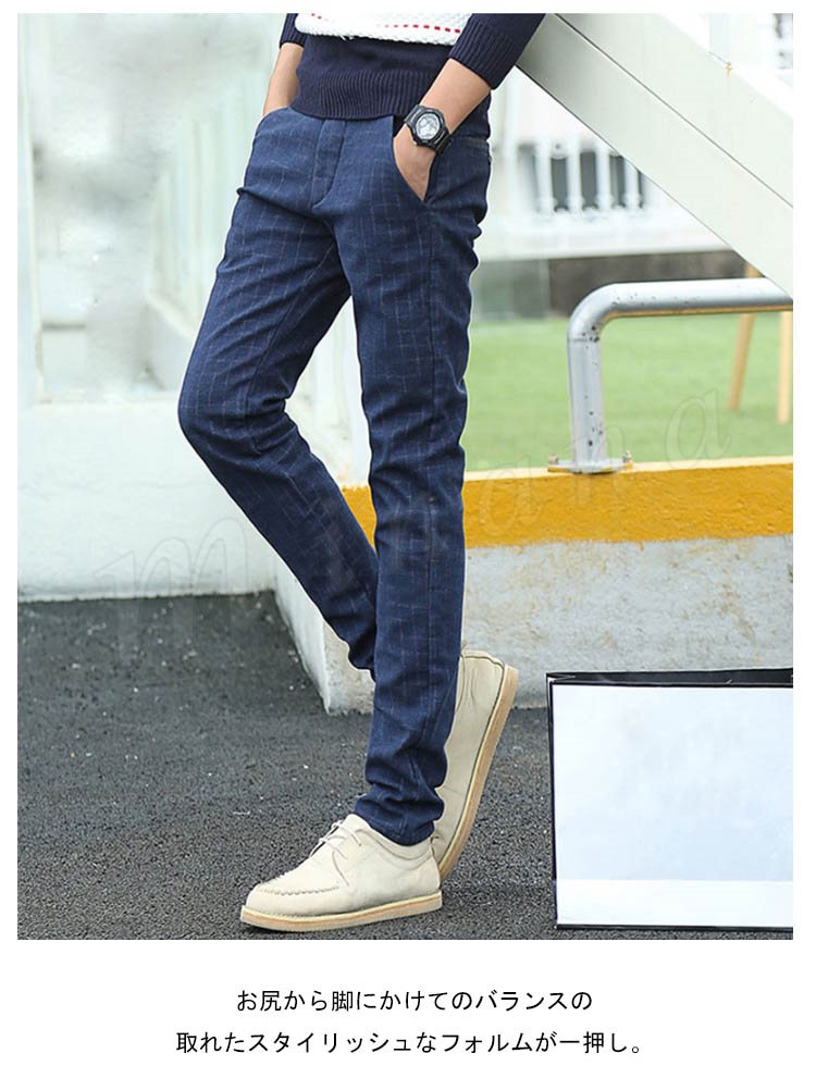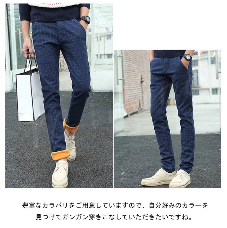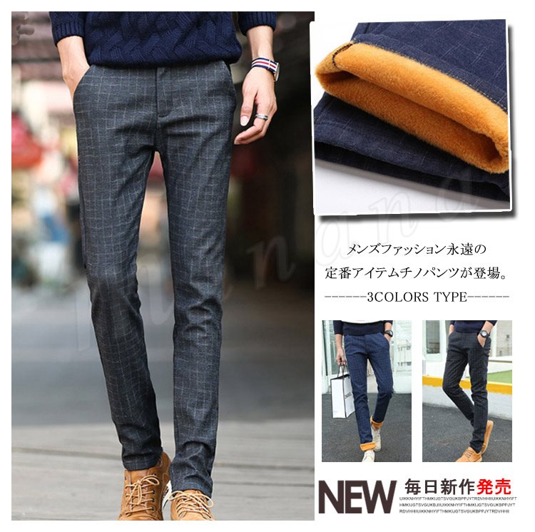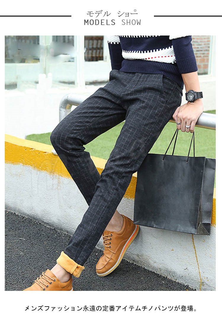 チノパンツ 普通/裏起毛パンツ メンズ 厚手パンツ チェック柄パンツ スリムパンツ ギンガムパンツ タイトパンツ 秋冬パンツ