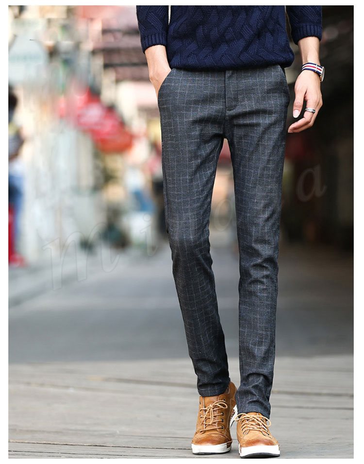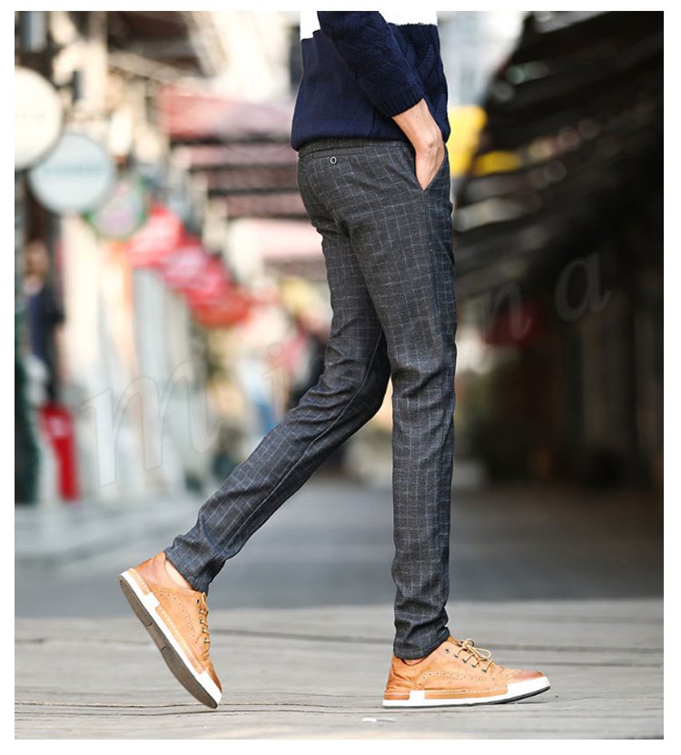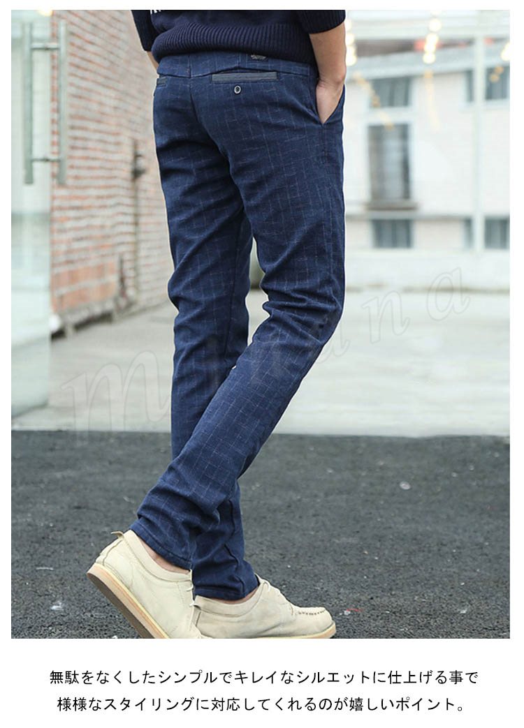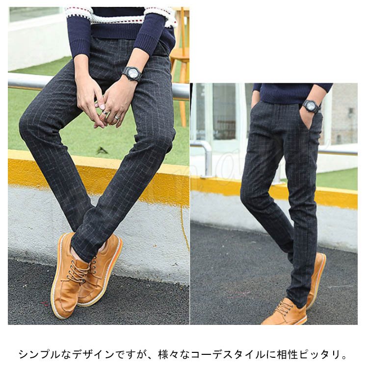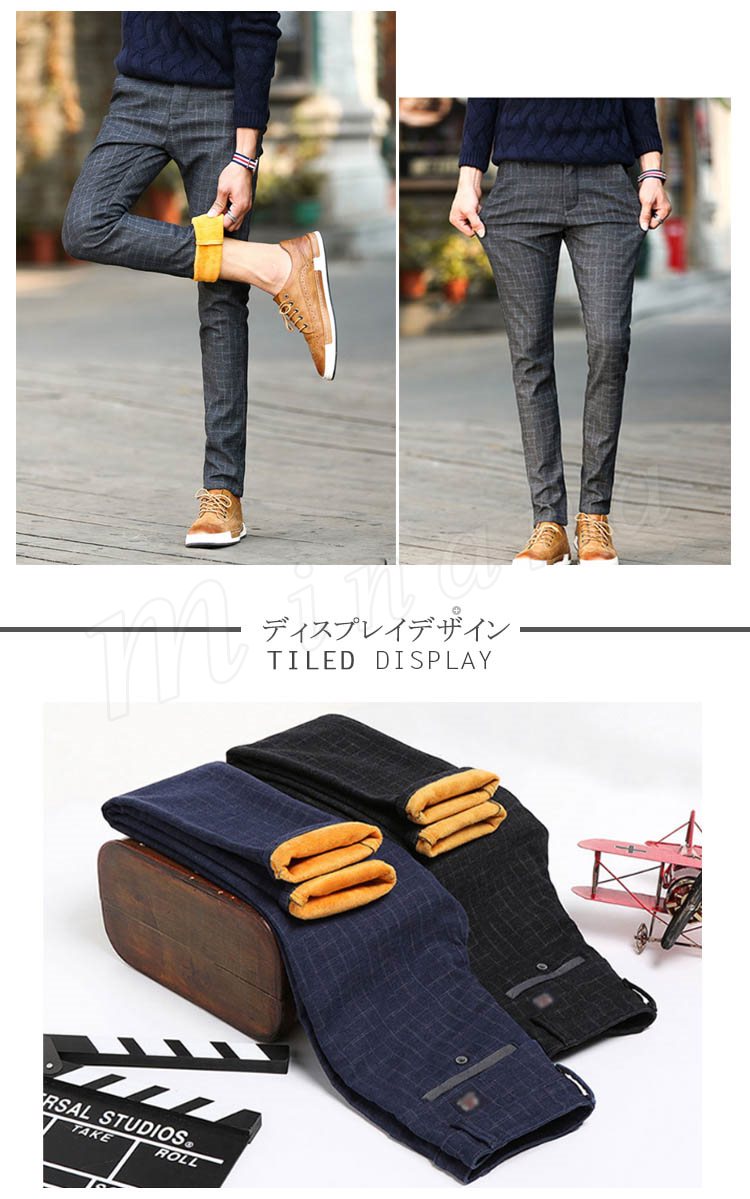 チノパンツ 普通/裏起毛パンツ メンズ 厚手パンツ チェック柄パンツ スリムパンツ ギンガムパンツ タイトパンツ 秋冬パンツ