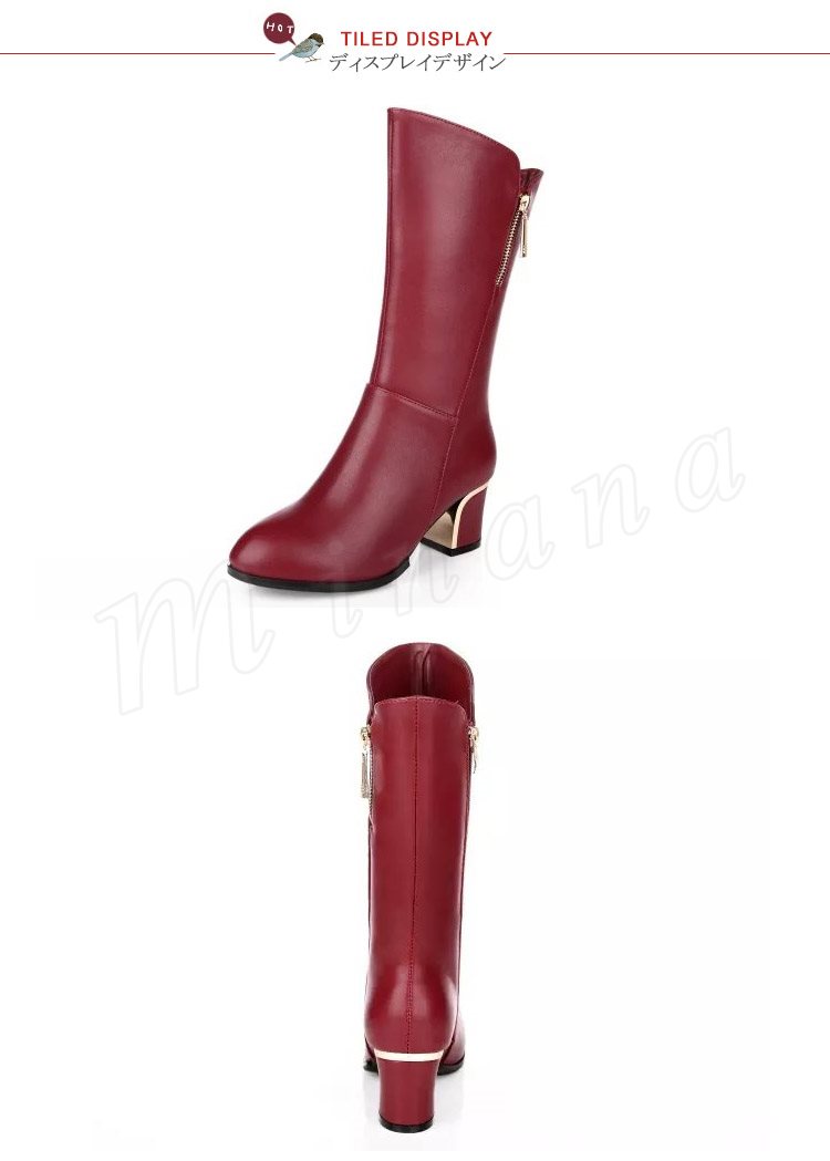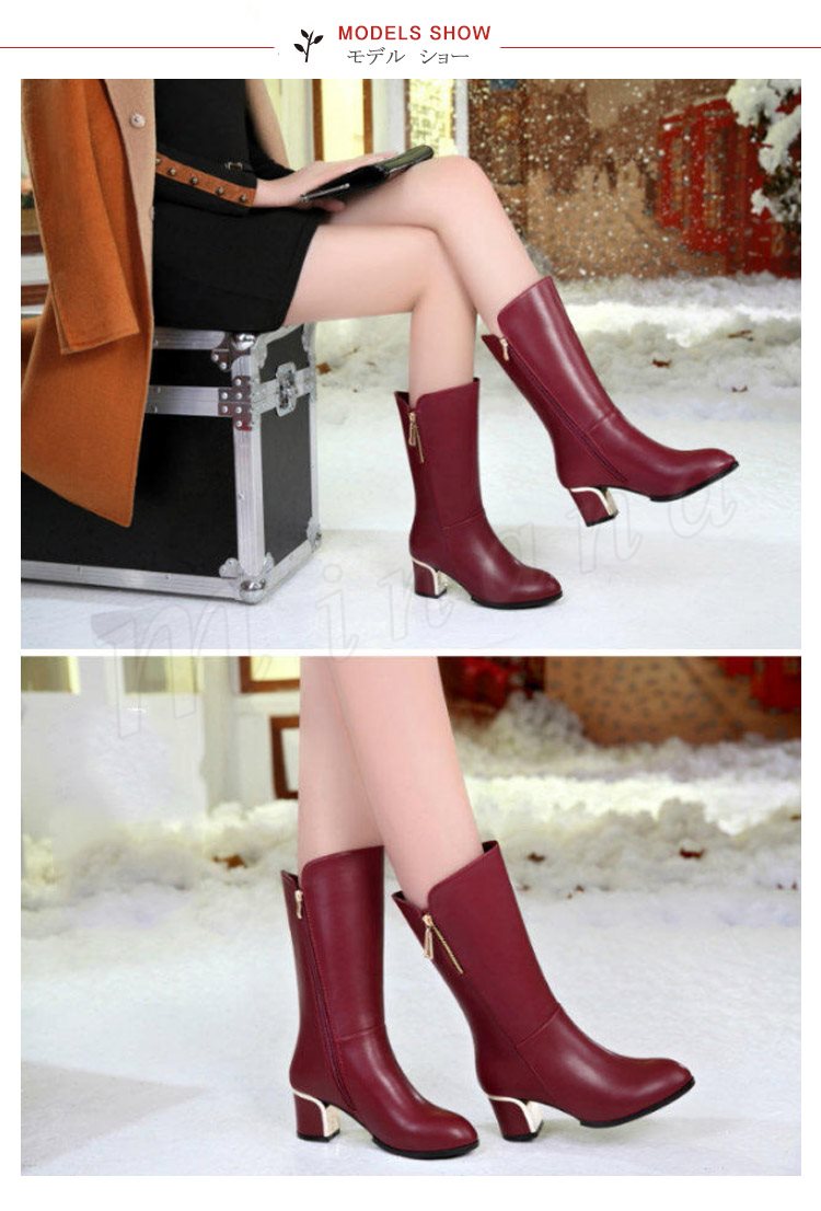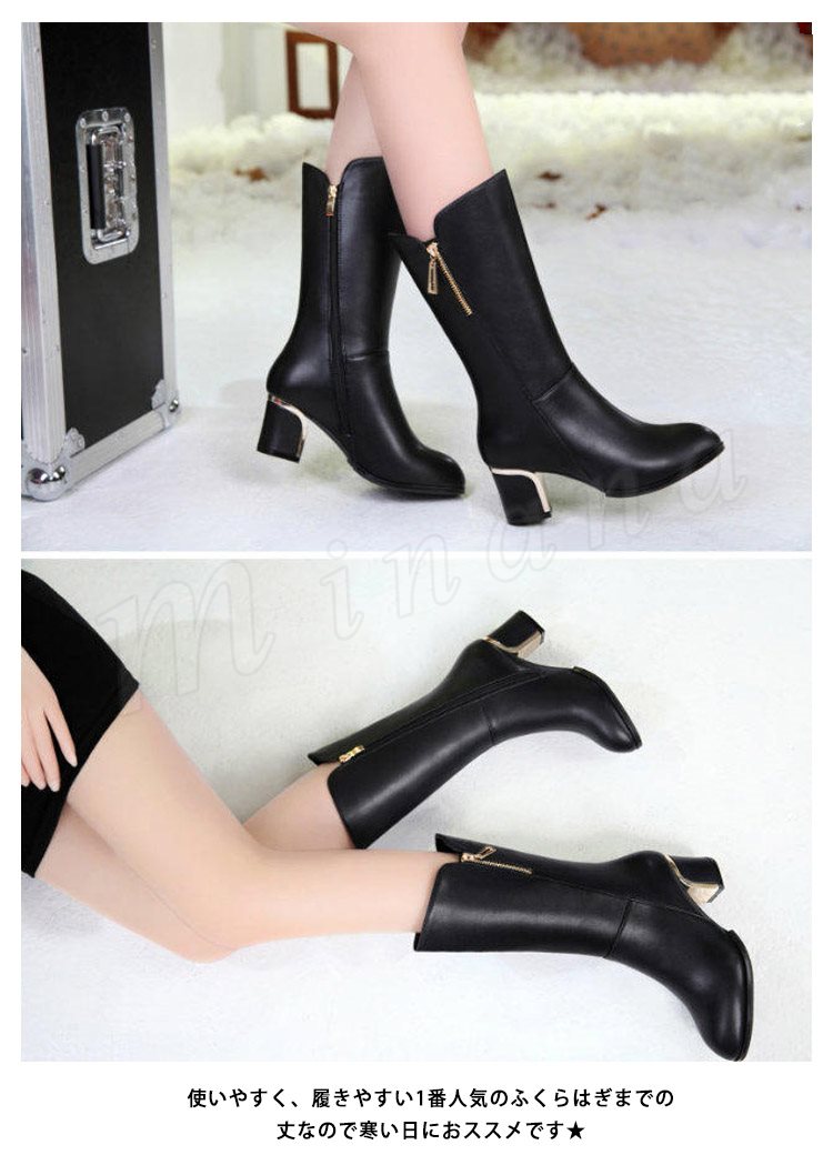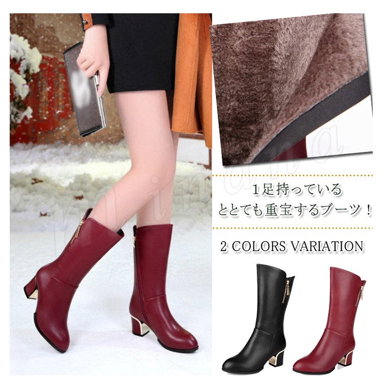 ロングブーツ フェイクレザー レディース ボア 秋 冬 春 ファー ジョッキーブーツ ムートン ヒール 大きいサイズ 黒 赤