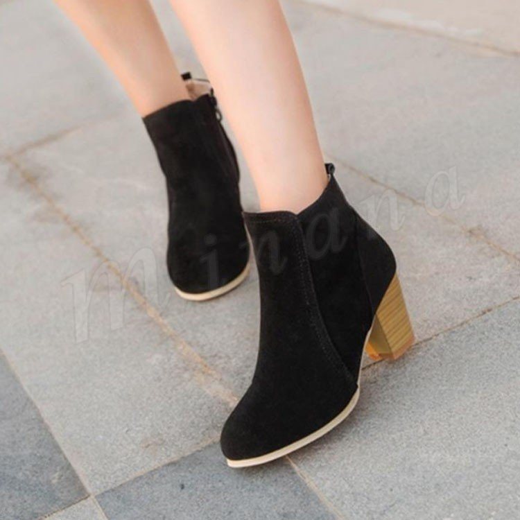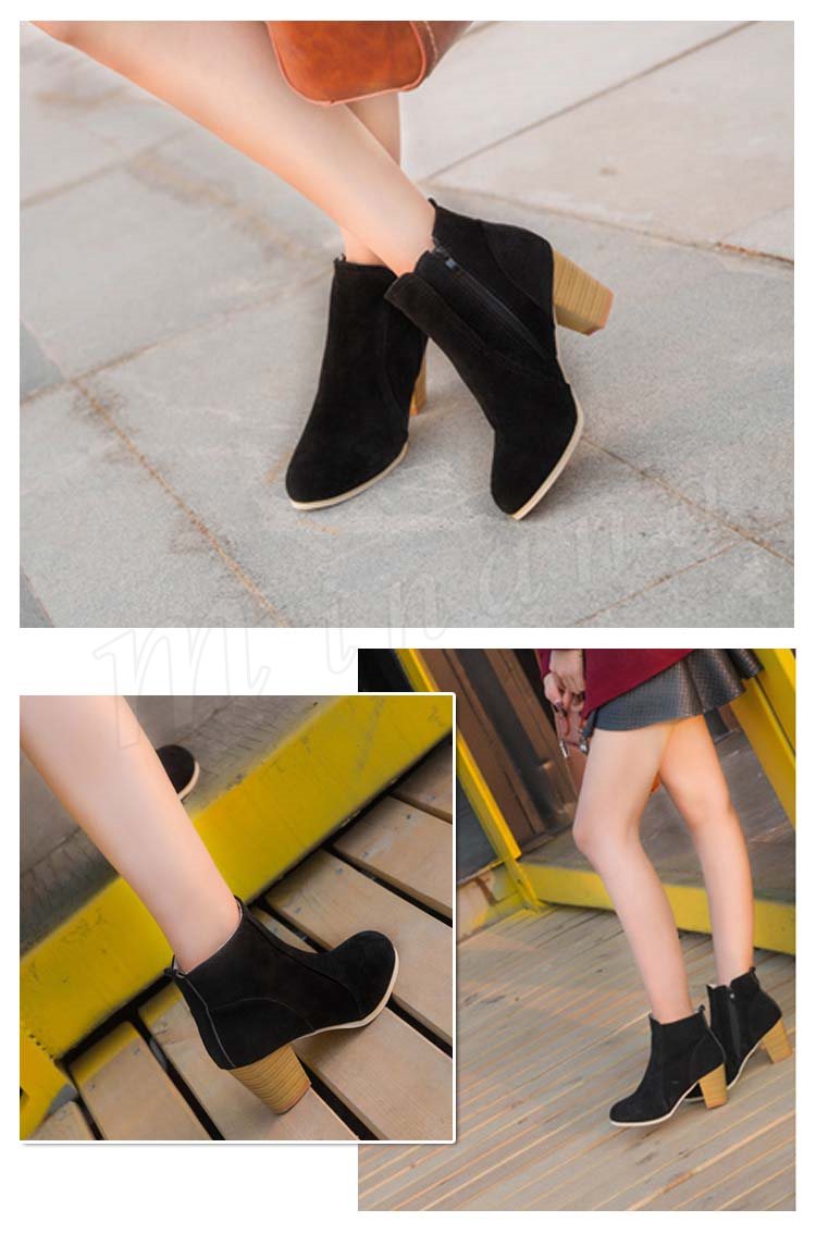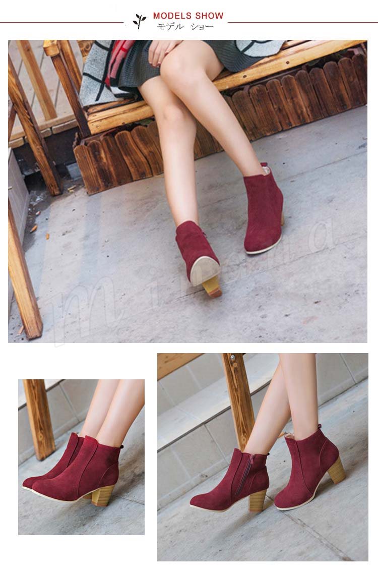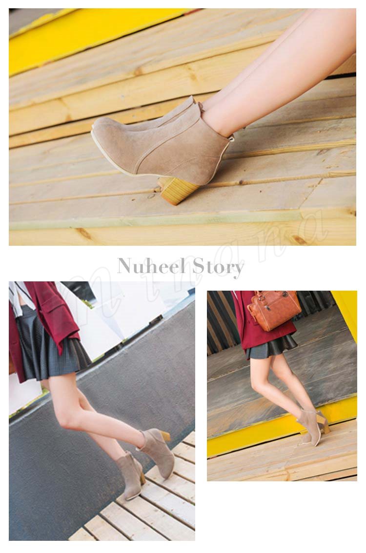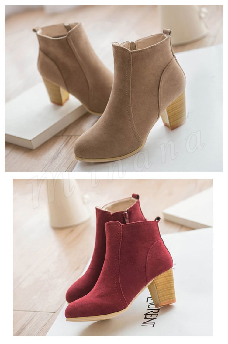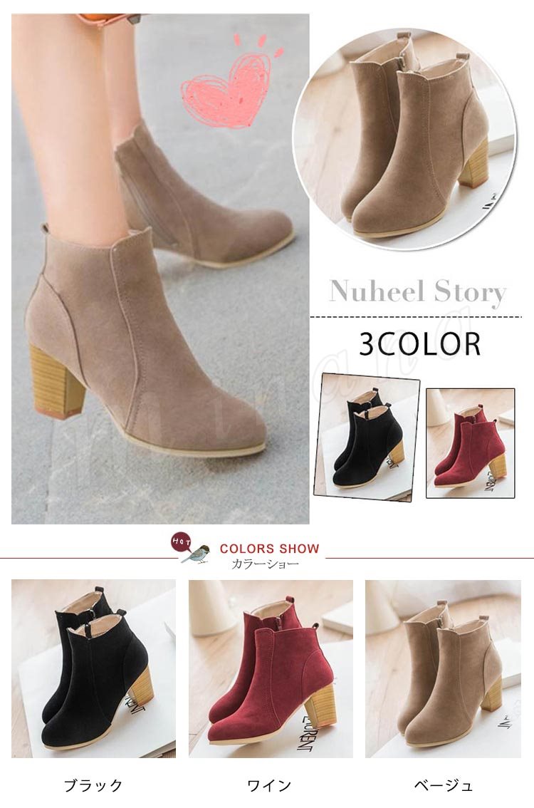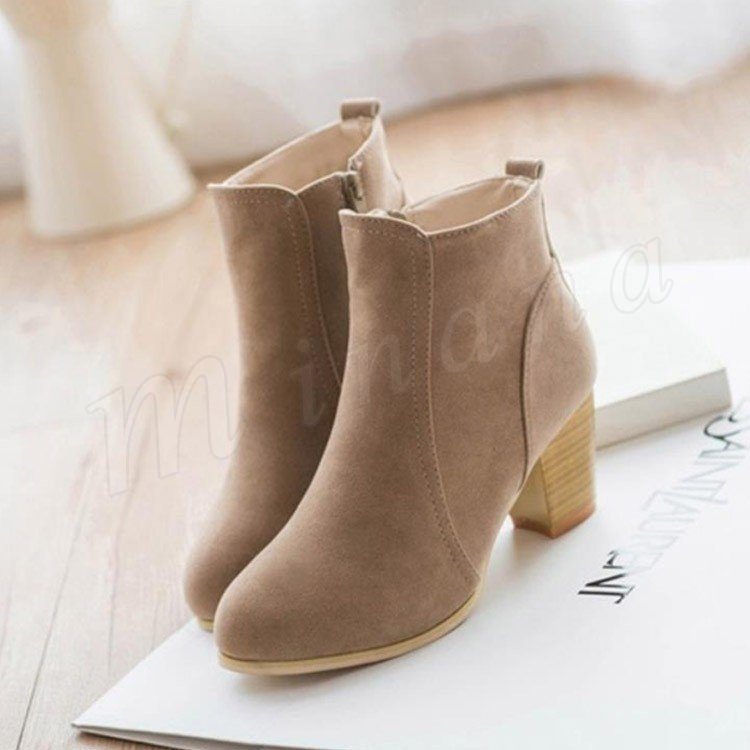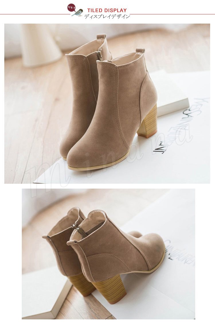 ブーティー ショートブーツ レディース スウェード調 太ヒール チャンキーヒール ヒール ジップアップ シンプル ショート ブーツ ベージュ
