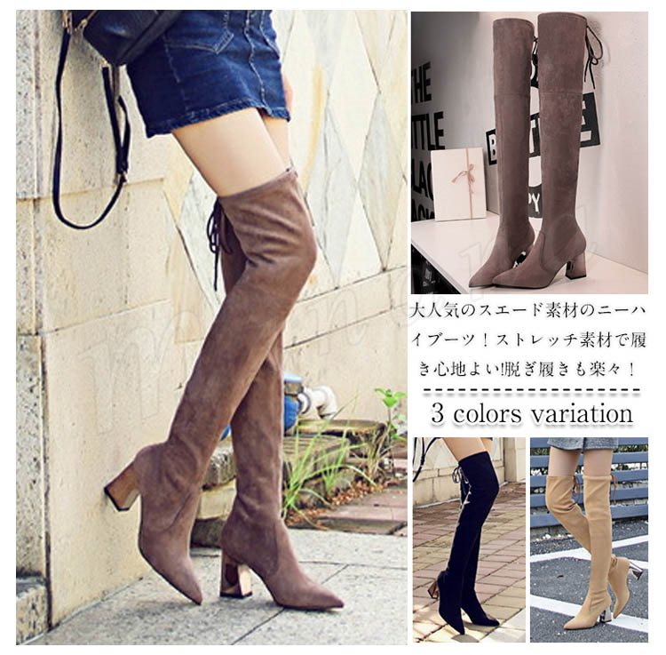 ニーハイブーツ ロングブーツ レディース ブーツ レディース ハイヒール 黒 スエード ニーハイ 靴 ブーツレディース ピンヒール ブーツ スエード