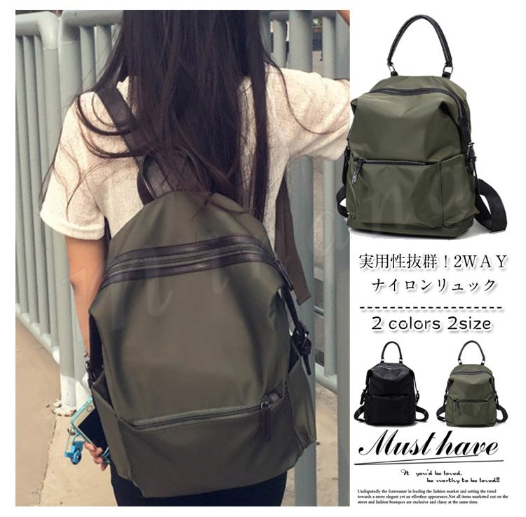 2WAY リュック バック カバン ナイロン 撥水加工 大容量 実用性 ビジネス 機能性 旅行 普段使い シンプル ファスナー付きポケット 取っ手付き