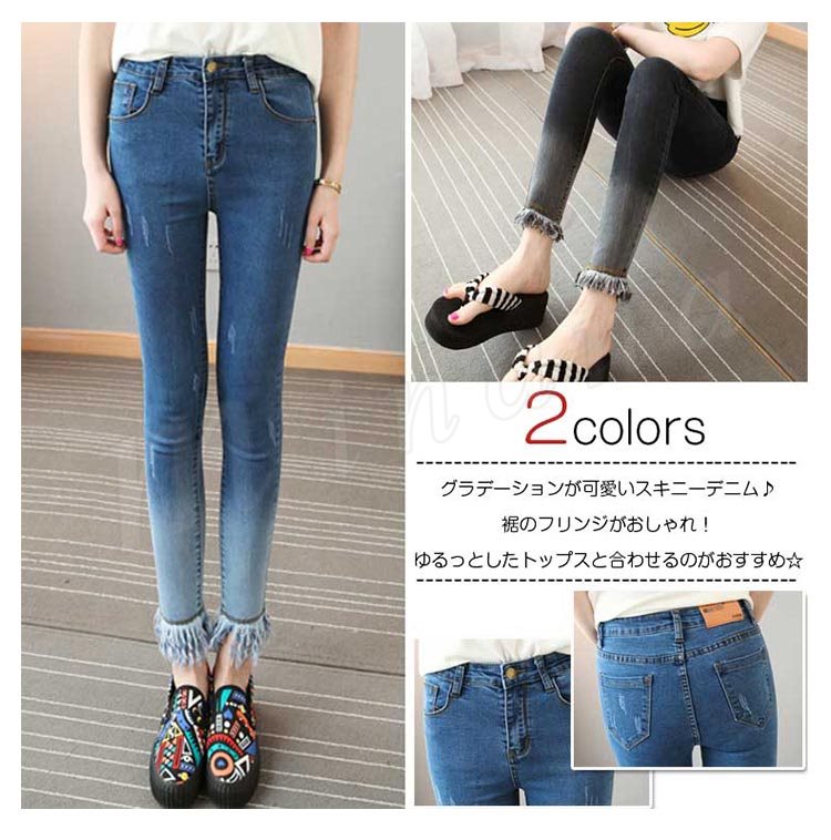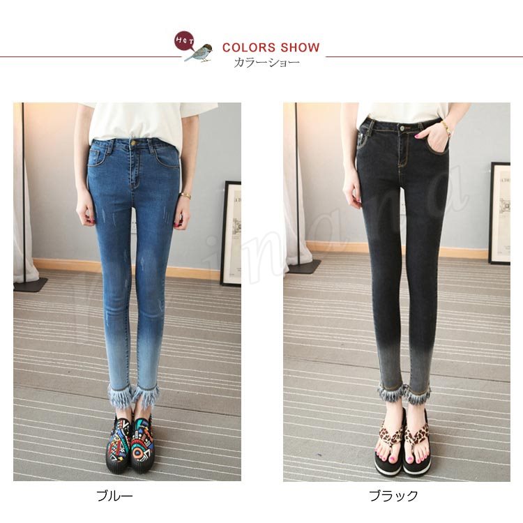 デニム パンツ スキニー 無地 グラデーション レディース ブルー