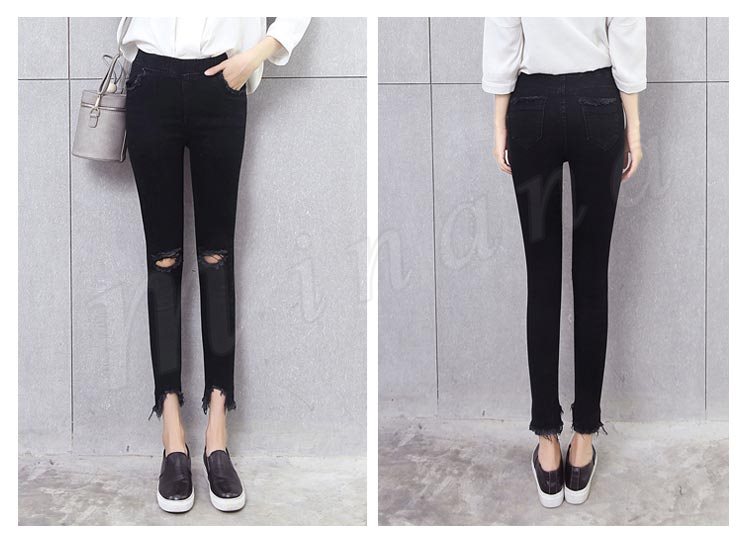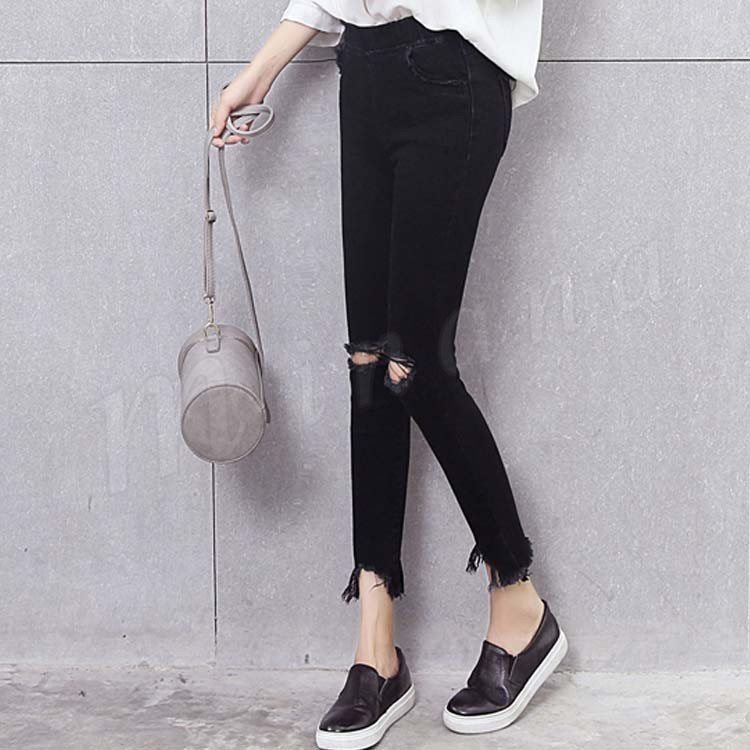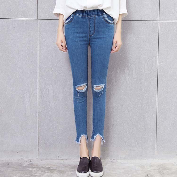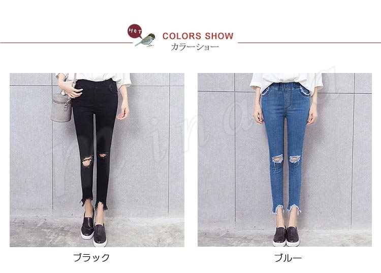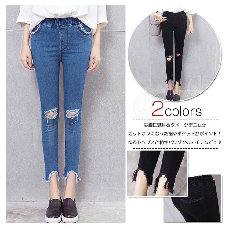 スキニーパンツ ジーンズ デニム ダメージ スリム ストレート カットオフ 美脚 ボトム レディース ブルー ブラック?