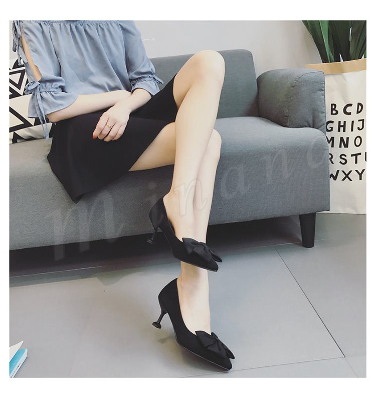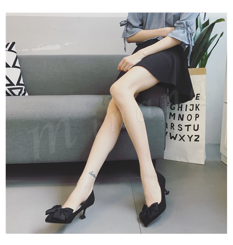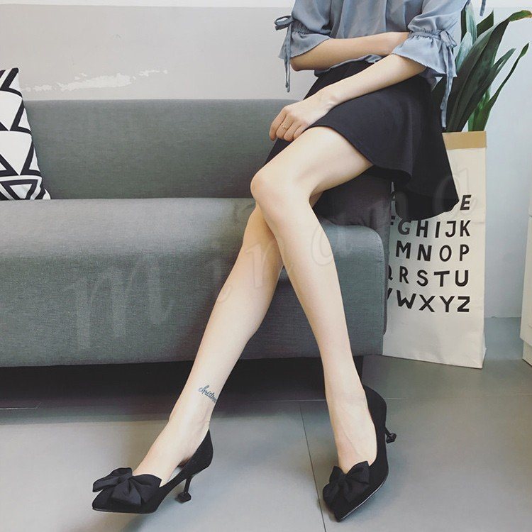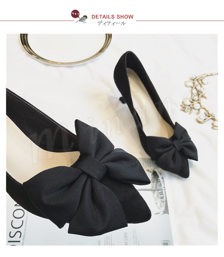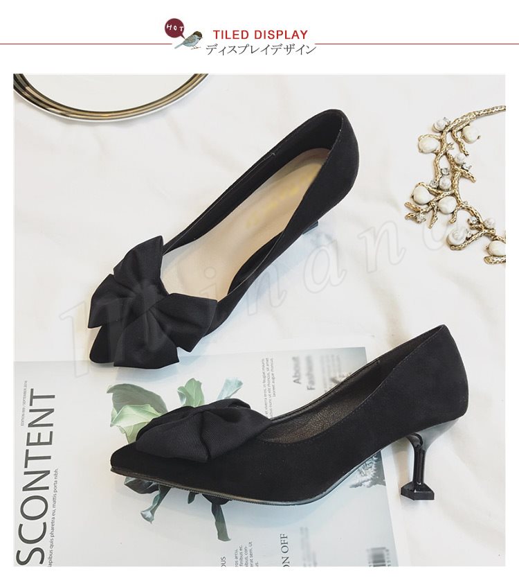 ピンヒール パンプス ポインテッドトゥ ハイヒール 新作 リボン シフォン 靴 シューズ レディース ブラック