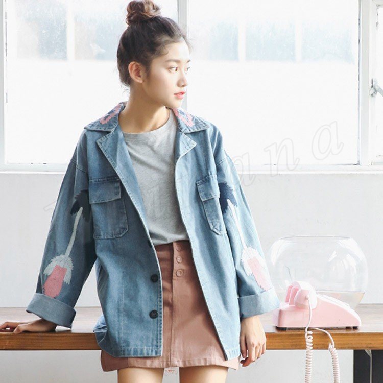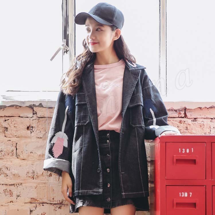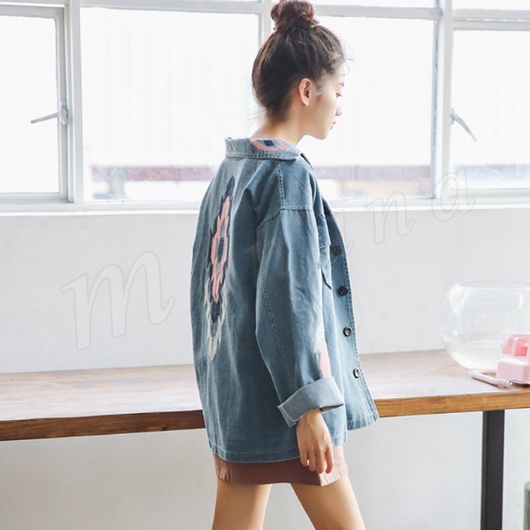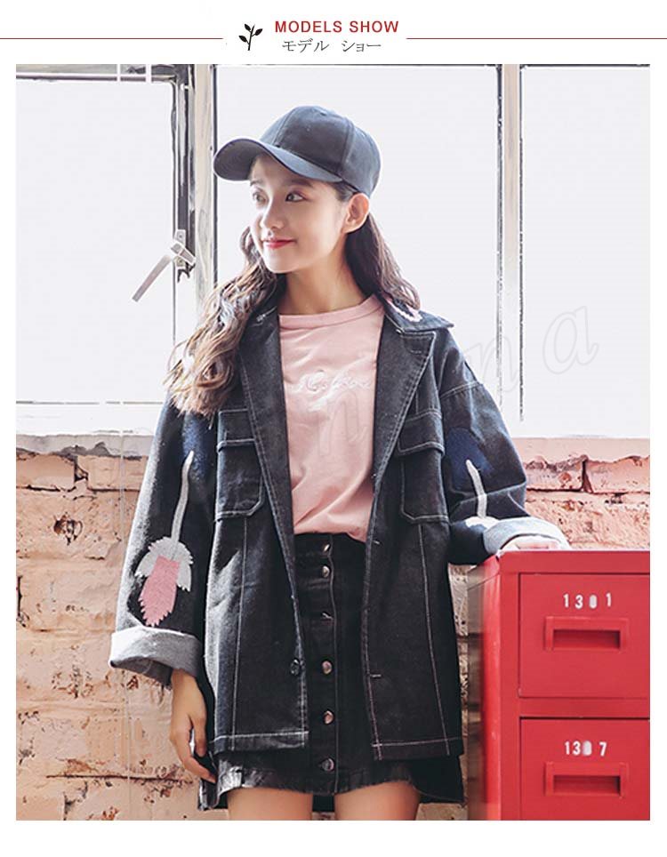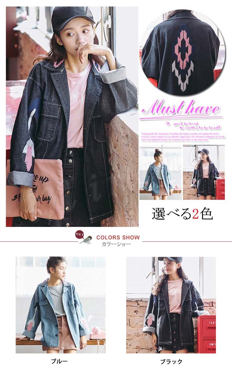 【デニムコート】レディース アウター ジージャン 刺繍 ゆったり Gジャン 花柄 春 羽織 デニム デニムジャケット カジュアル